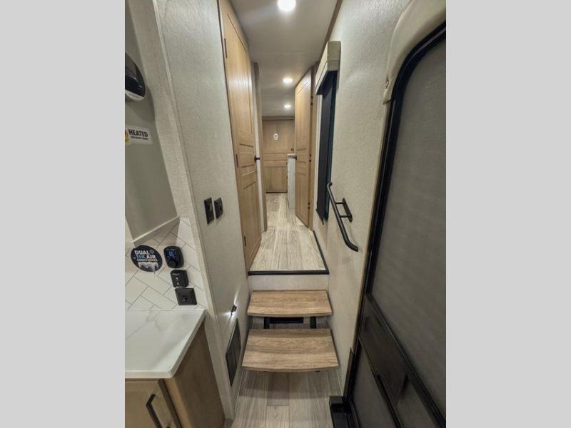Each one of these Forest River Sierra fifth wheels are equipped with everything you need to make the most of each adventure! The underbelly armor will protect your unit's vitals from road debris and the painted two tone aerodynamic fiberglass front cap has an improved turning radius to make them easier to navigate. With an electric leveling system, you can set your unit up quick and easy then get to having fun faster than ever. The welded aluminum framed, vacuum bonded laminated superstructure will hold up through every adventure and the cambered powder coated frame comes with rust prohibitor to last longer. Each model also includes the Summit Package that comes with a king Wi-Fi extender system and Olympus antenna, a full coach water filter system, Goodyear tires with 7,000 lb. axles, and the list goes on. The interior is just as impressive with rustic wood plank linoleum, recessed residential lighting, a memory foam mattress, and mocha accent crown molding over the kitchen cabinets!
