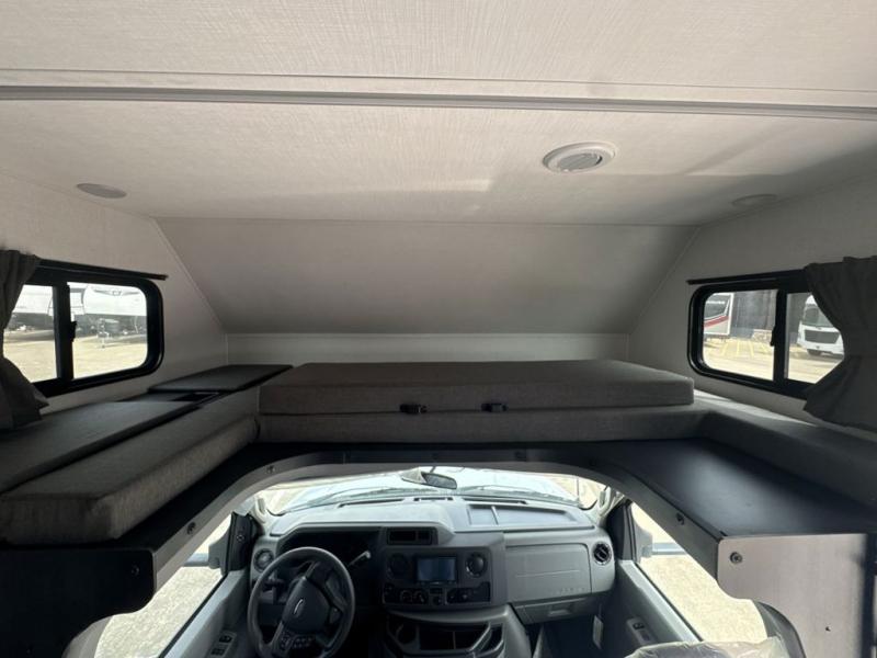 Pack your bags and pick your favorite destination then head out in this motorhome! The rear private bedroom has a 60" x 74" queen bed slide for more interior space, and a linen closet with wardrobes on either side of it. There is also a split-style bath with a private toilet and sink, and the shower is right across the hall. Prepare your best home cooked meals using the three burner cooktop, enjoy dining at the U-shaped dinette, and store any leftovers in the 10.7 cu. ft. 12V refrigerator. You will also appreciate the flip-up countertop for more meal prepping space. Relax each evening on the 66" sofa, or you can replace it for the optional power theater seating. There is even a 60" x 80" bunk over the cab for extra sleeping or storage space!