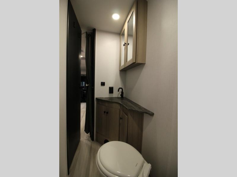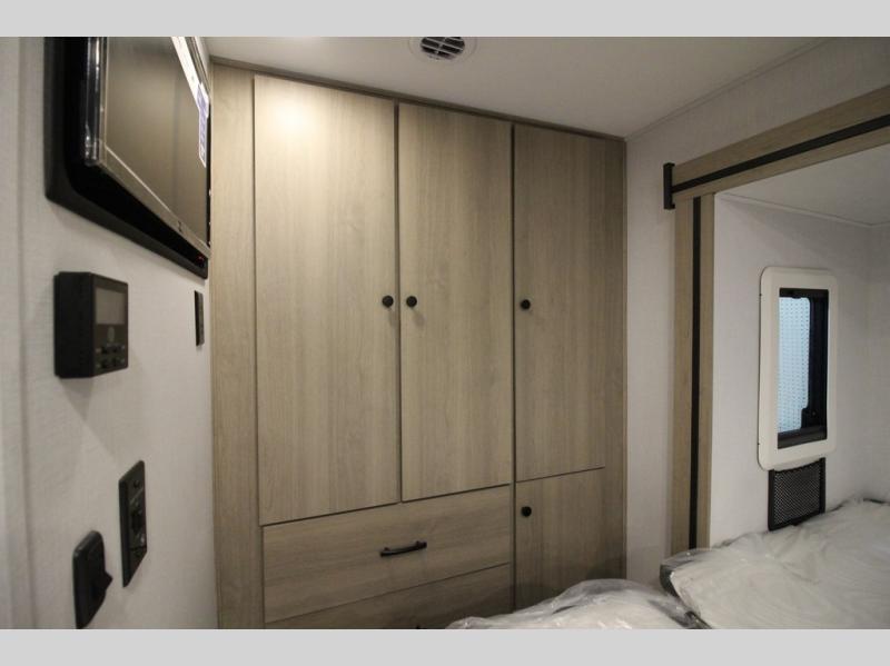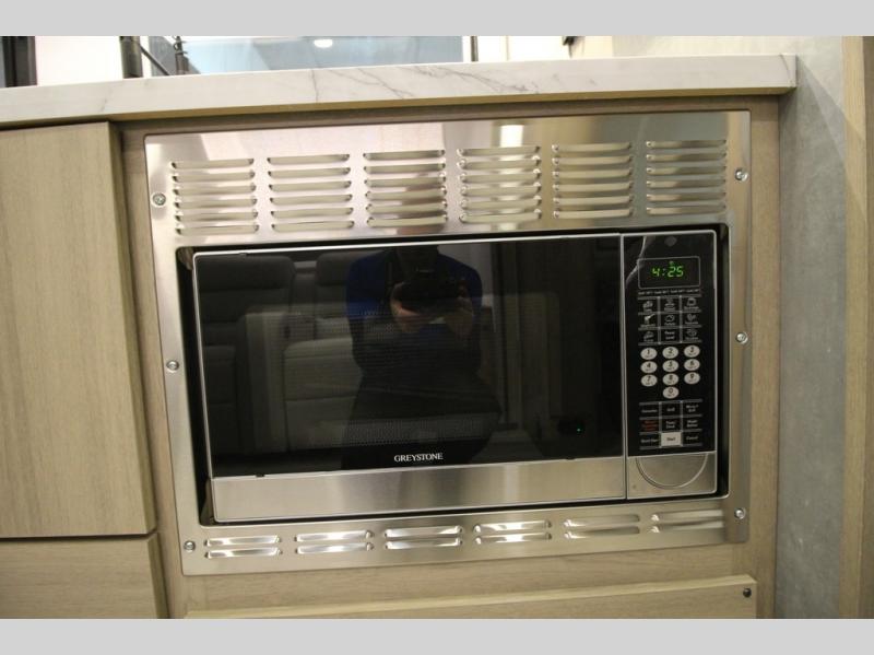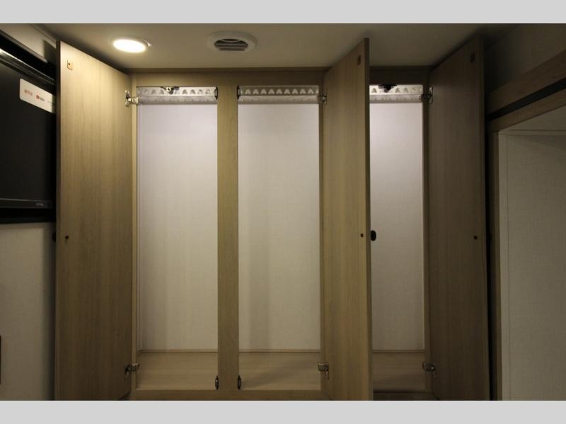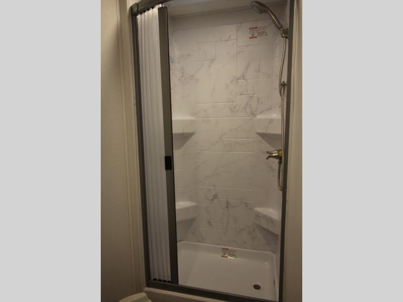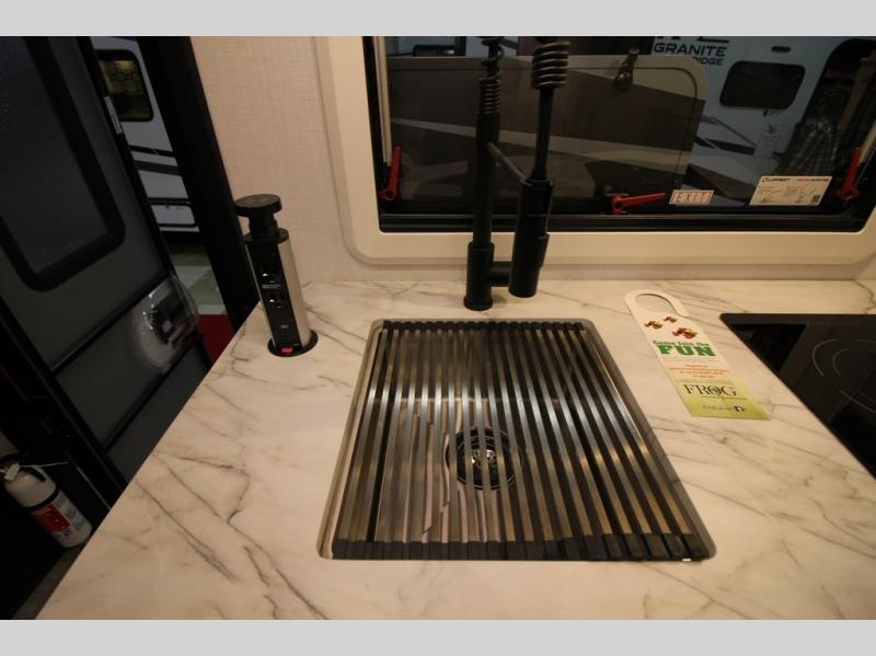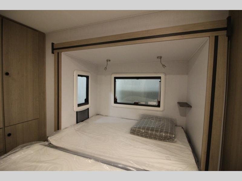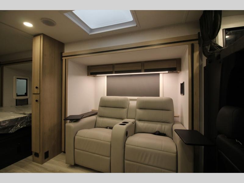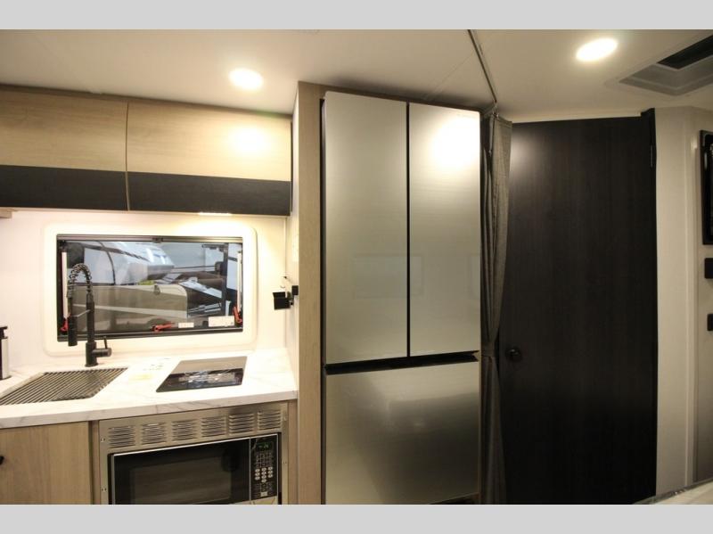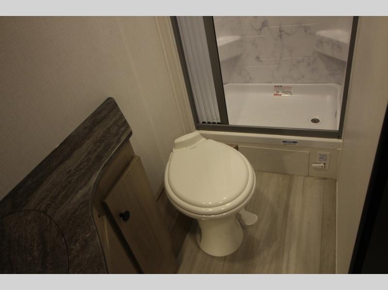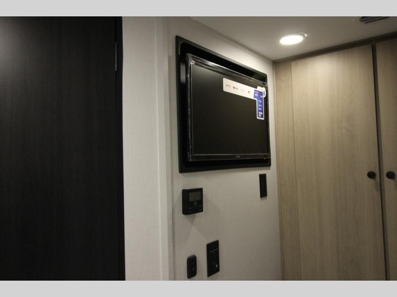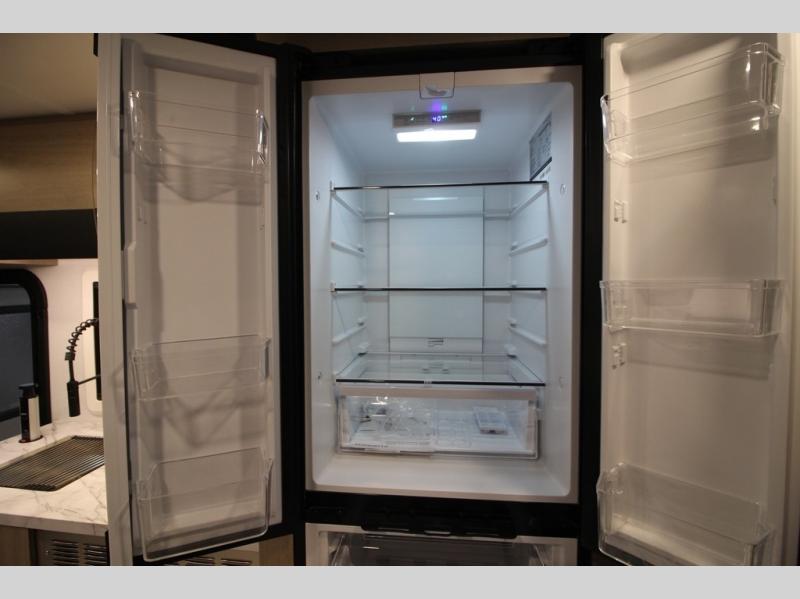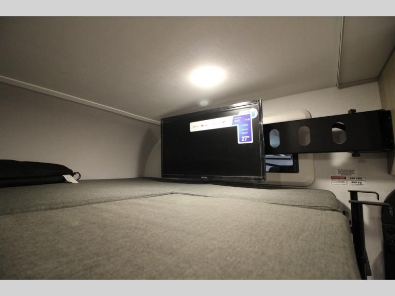 Everything you need is found in this cozy motorhome for five to six people. The swivel captain's seats can become a part of the living area once you park, and your guests can gather around the U-shaped dinette slide for game night. Your meals can be prepared each day on the induction cooktop with a convection microwave, and the flip-up counter will provide more prep space. There is also a 10.7 cu. ft. 12V refrigerator for food storage. The bedroom features a queen bed slide, 12V TV, plus a wardrobe to keep your clothes organized. A 60" x 80" cab-over bunk provides more sleeping space, or you can choose the optional Trekker cap with a built-in entertainment center!