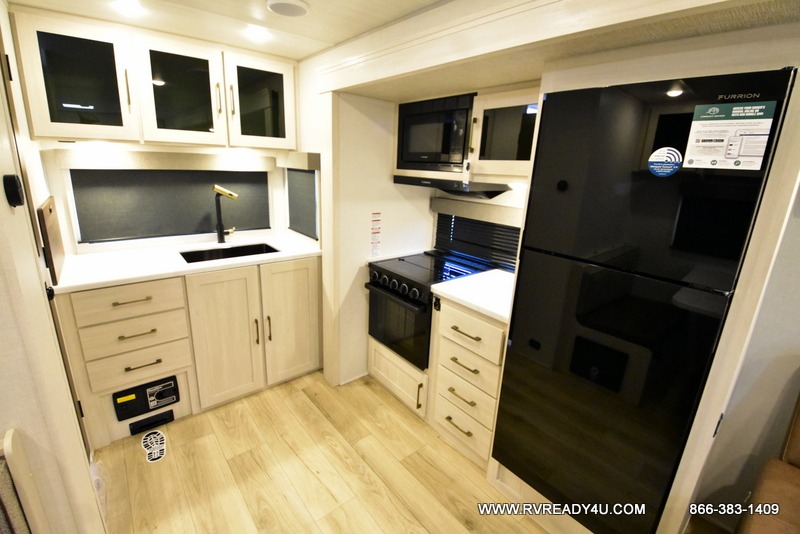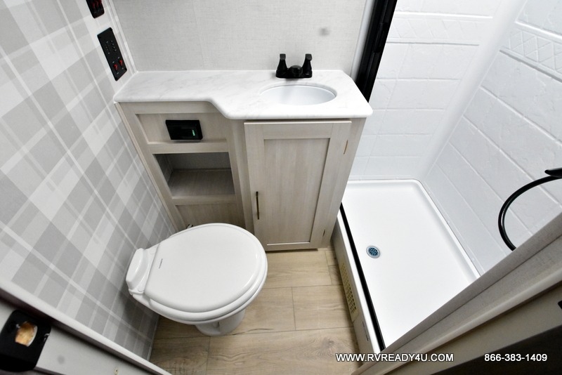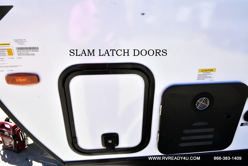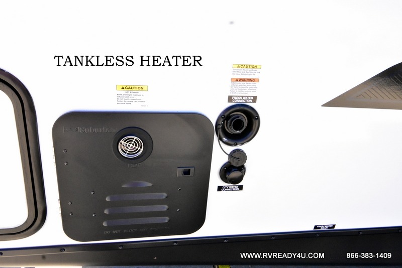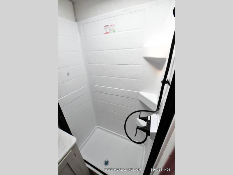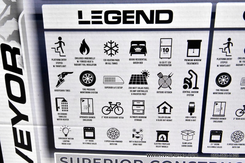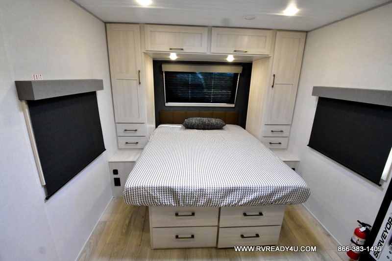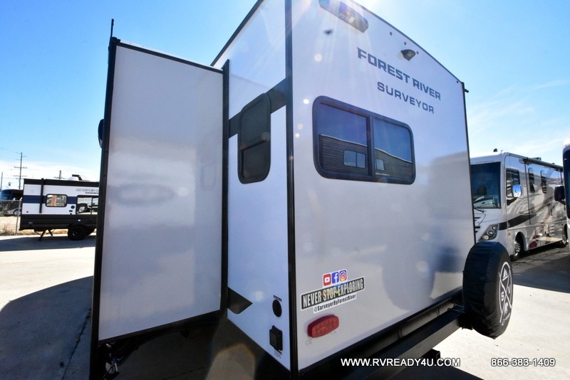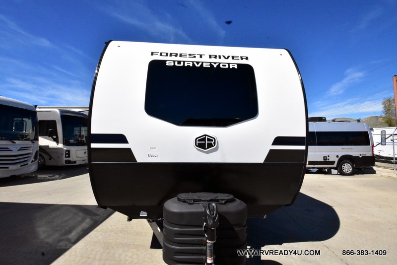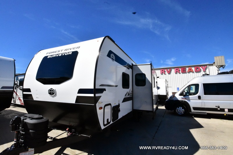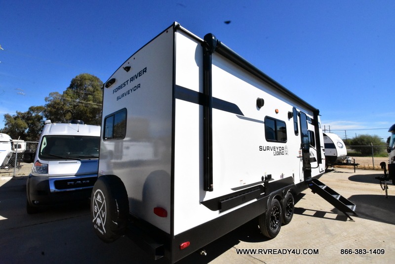 With any Surveyor Legend travel trailer by Forest River you will enjoy quality craftsmanship, convenient amenities, and at-home comforts. The Azdel composite walls provide a longer-lasting trailer, and the power tongue jack with a hitch light will get you back on the road in no-time. There are also Goodyear tires and a tire pressure monitoring system for hassle-free towing. Each model includes the Surveyor Legend Package that comes standard with oversized dinette storage access doors, front slam latch baggage doors, plus an automotive style tinted front windshield. You'll appreciate camping with a tankless water heater for endless hot showers, a 2" accessory hitch to bring bikes along, plus carpet-free interiors and a central vacuum system for easy clean up.