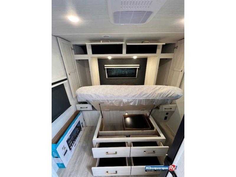 With any Surveyor Legend travel trailer by Forest River you will enjoy quality craftsmanship, convenient amenities, and at-home comforts. The Azdel composite walls provide a longer-lasting trailer, and the power tongue jack with a hitch light will get you back on the road in no-time. There are also Goodyear tires and a tire pressure monitoring system for hassle-free towing. Each model includes the Surveyor Legend Package that comes standard with oversized dinette storage access doors, front slam latch baggage doors, plus an automotive style tinted front windshield. You'll appreciate camping with a tankless water heater for endless hot showers, a 2" accessory hitch to bring bikes along, plus carpet-free interiors and a central vacuum system for easy clean up.