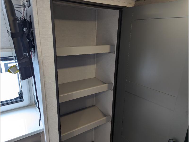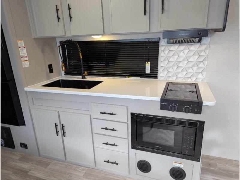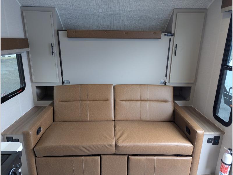 You're sure to make lasting memories in this rear bath travel trailer! There is a large pass-thru storage outside, along with a universal outside kitchen with a spray port, refrigerator, and an induction cooktop so you can enjoy the fresh air as you cook. Inside, you'll find a bar top with two stools and a flip-open window for great outdoor views. A walk-in pantry will allow you to keep snacks and canned goods stocked, and the full rear bath offers privacy. This unit also includes a front jackknife sofa and a Murphy bed, providing you with versatile seating and sleeping spaces. There are also dual wardrobes to keep your things organized plus dual nightstand that are CPAP ready!