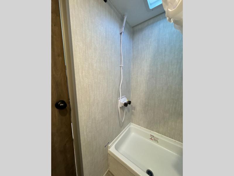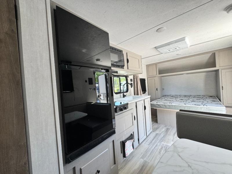 Your guests will love camping with you in this travel trailer! The bunkhouse suite includes four bunks with storage underneath plus a full rear bath to easily clean up each day. The front RV queen bed will provide a great night's rest, or you can choose the Murphy bed option if you're needing more seating space during the day. You can make your best meals in the full kitchen with a three burner cooktop and microwave oven, and there is an 8 cu. ft. 12V refrigerator to keep your cold items fresh. The U-shaped dinette provides a place to dine, play games, and even let additional guests sleep over. This unit also features a closet with washer and dryer prep if you choose to add those appliances.