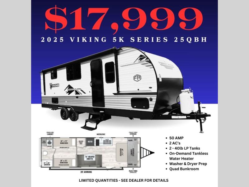 2025 Forest River Viking 5K Series travel trailer 25QBH highlights: