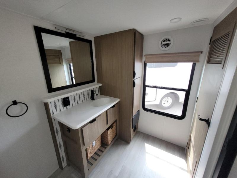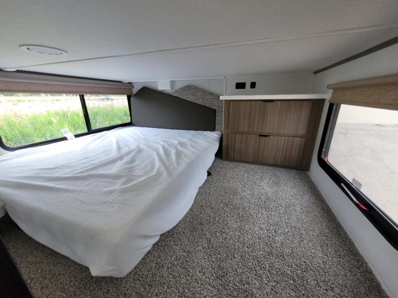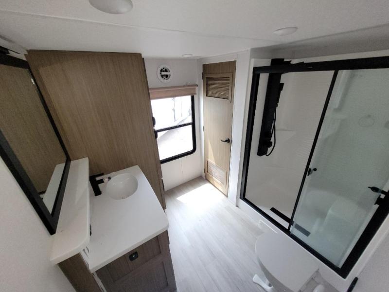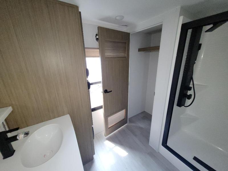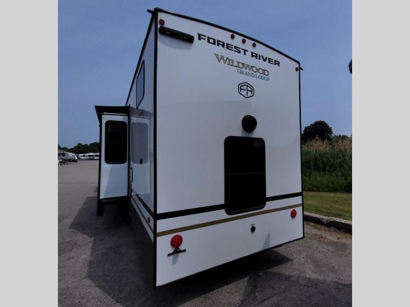 With any Wildwood Grand Lodge destination trailer by Forest River, you can enjoy extended stays wherever you go! There is 4K awning blade lighting outside, along with slide out awning toppers, plus a heated and enclosed Accessibelly for added protection. Inside, you'll love the stylish backsplash update, elegant curtain rods and curtains, TFL black walnut entertainment shelves, and stainless steel kitchen appliances. A Serta mattress in the bedroom(s) will provide comfort to each journey, and there is a tankless water heater for hot water when you need it.