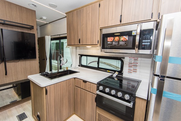 You just can't beat the Forest River Wildwood Lodge destination trailer! These trailers create the perfect camping destination in and of themselves. There is a new retro/metal redesign that is sure to turn heads at the campground, and the heated and enclosed Accessibelly provides added protection against the elements. Each model includes stainless steel kitchen appliances, a central vacuum with a sweep attachment, a Serta mattress, and kitchen backsplash to name a few comforts. Additional stand-out features include TFL cabinet doors, LED "Blade Lighting' under the awning, stylish roller shades, plus Lippert On-The-Go ladder prep for the option to add a ladder.