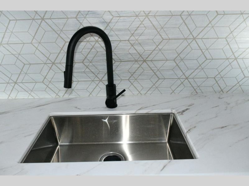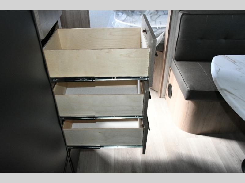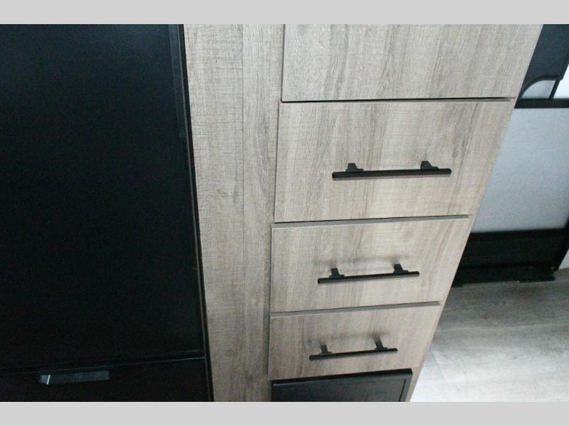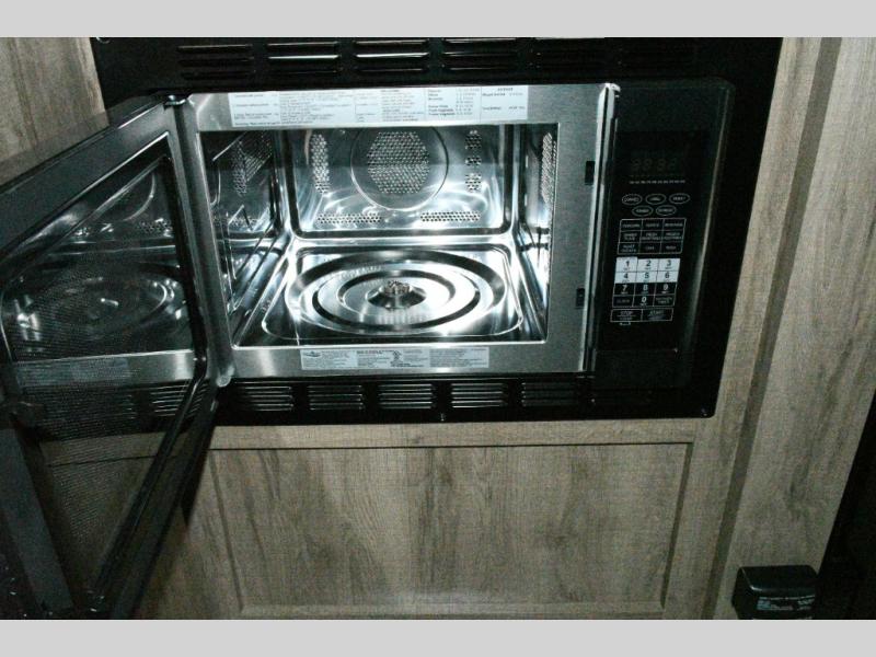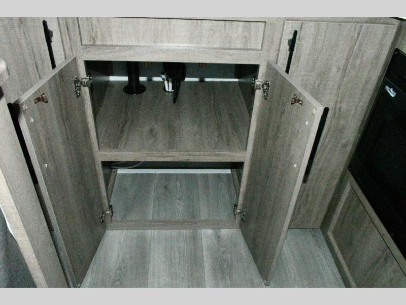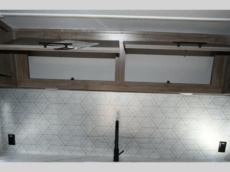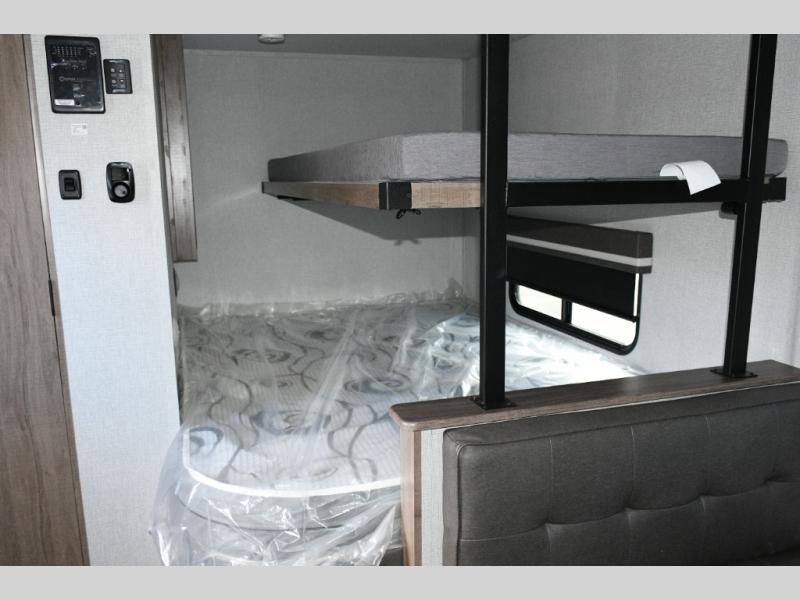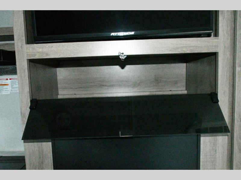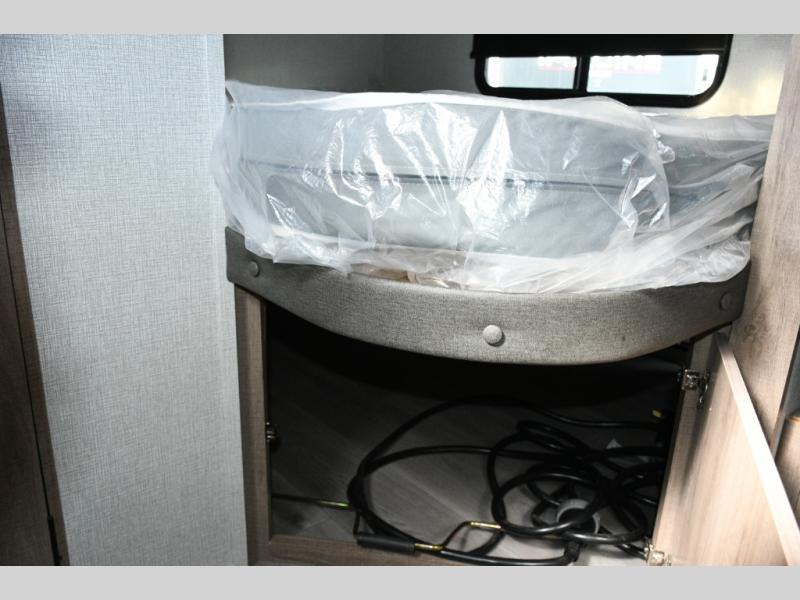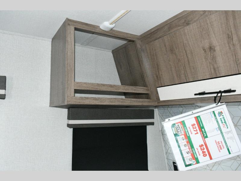 Outdoor living is easy with the outside griddle and baggage doors for organized storage. Built for all seasons, this travel trailer includes the 4-Seasons Protection Package, ensuring you can camp comfortably year-round. Inside, residential cabinetry, premium window treatments, and countertops create a home-like atmosphere, while the on-demand tankless water heater and HD LED TV add modern convenience and entertainment.