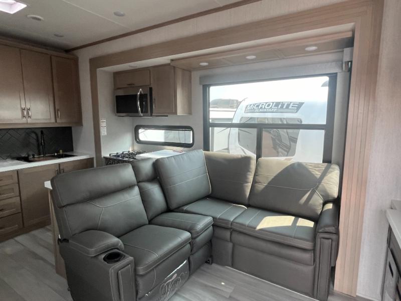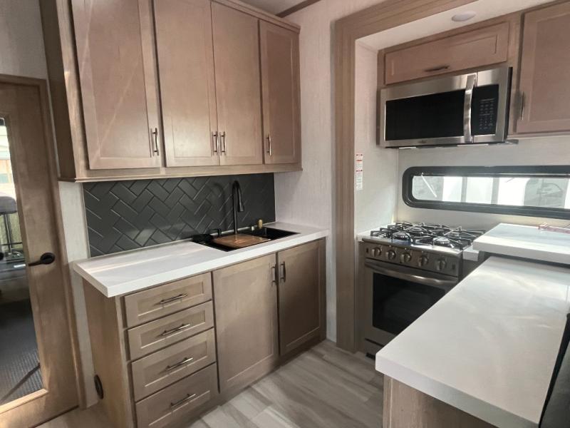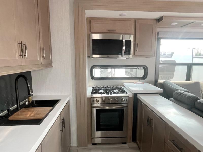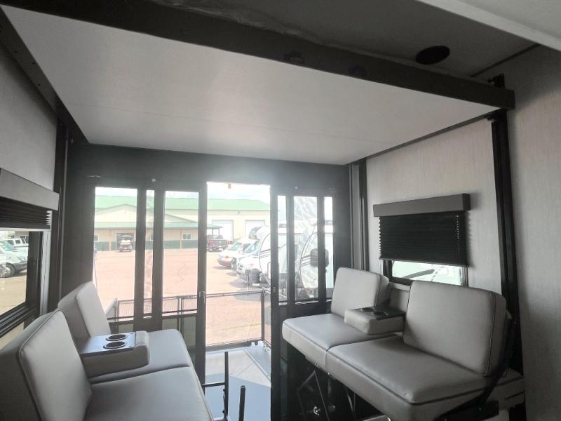 With any Momentum M-Class toy hauler by Grand Design, you will enjoy luxury at every turn! They have been constructed to a superior standard with a thermal roof design, triple insulated main floor and garage floor, and a Rail-Tite underbelly seal that will allow you to camp in all elements. Each model also features an 8' 5" wide body chassis with a wide rail design, no wheel wheels, and a dovetail entry for easier loading. The Stealth A/C system provides maximum cooling power, and the CRE3000 suspension system means you can enjoy a smooth tow each time. You will love the luxurious interior with a professional grade stainless steel cooktop, interior color changing LED accent lighting, a fiberglass shower with a glass door, and solid surface countertops.