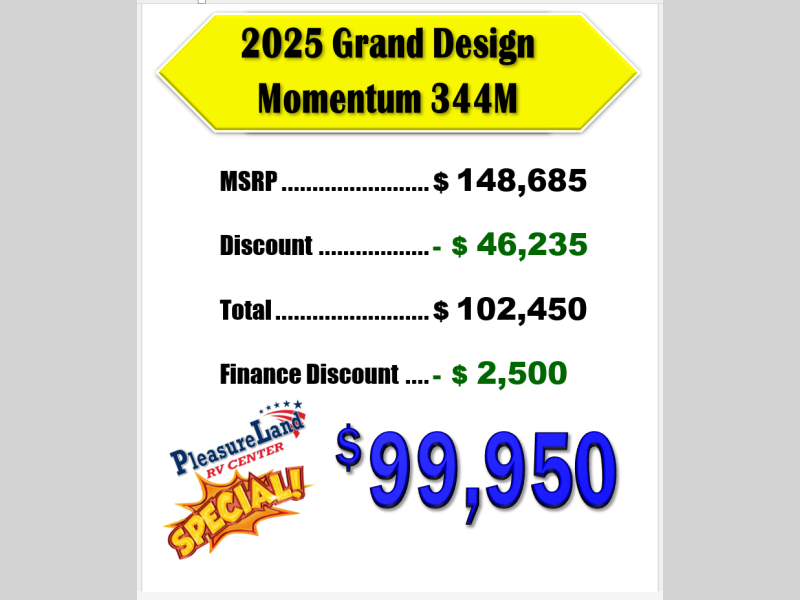 New 2025 Grand Design Momentum M-Class 344M Toy Hauler Fifth Wheel