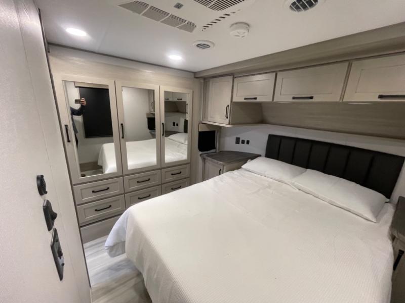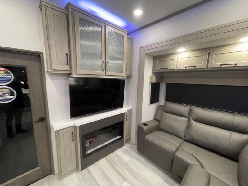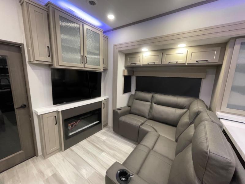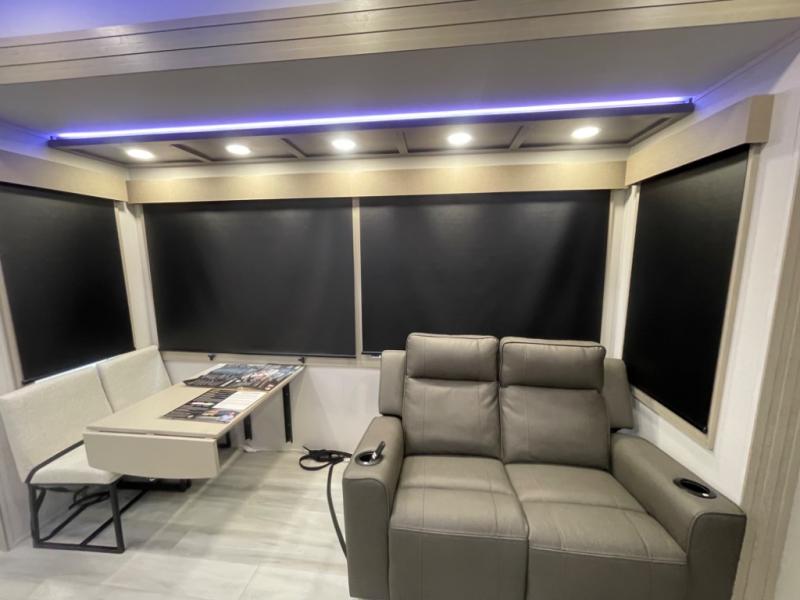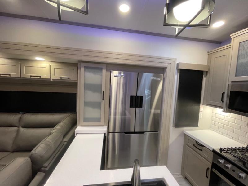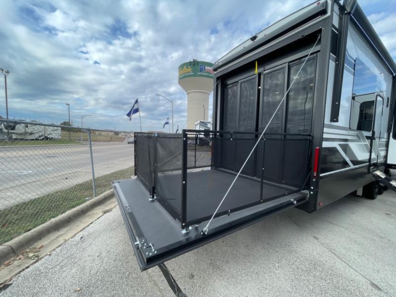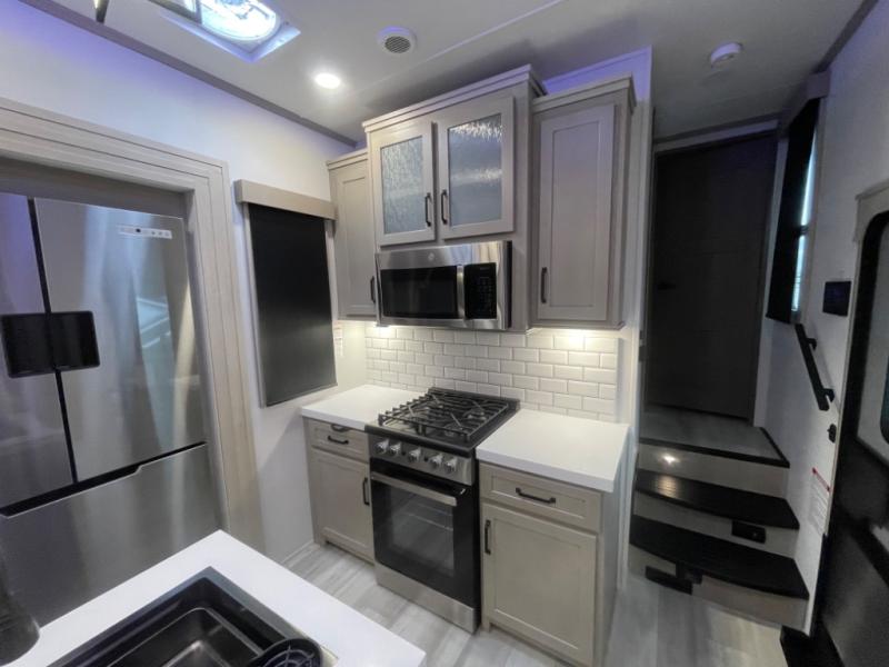 With any Momentum M-Class toy hauler by Grand Design, you will enjoy luxury at every turn! They have been constructed to a superior standard with a thermal roof design, triple insulated main floor and garage floor, and a Rail-Tite underbelly seal that will allow you to camp in all elements. Each model also features an 8' 5" wide body chassis with a wide rail design, no wheel wheels, and a dovetail entry for easier loading. The Stealth A/C system provides maximum cooling power, and the CRE3000 suspension system means you can enjoy a smooth tow each time. You will love the luxurious interior with a professional grade stainless steel cooktop, interior color changing LED accent lighting, a fiberglass shower with a glass door, and solid surface countertops.