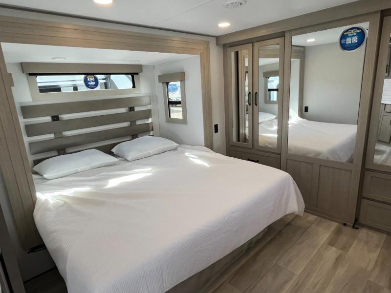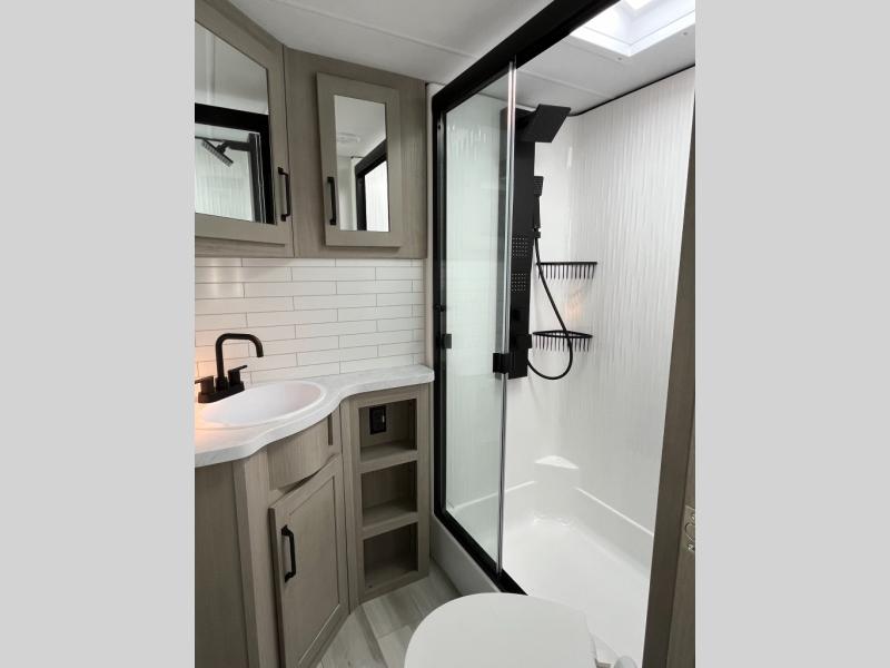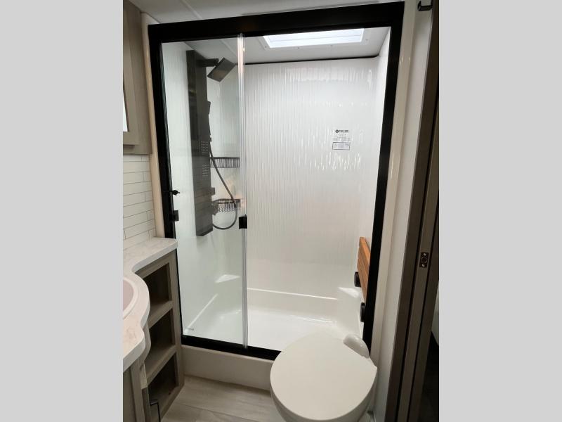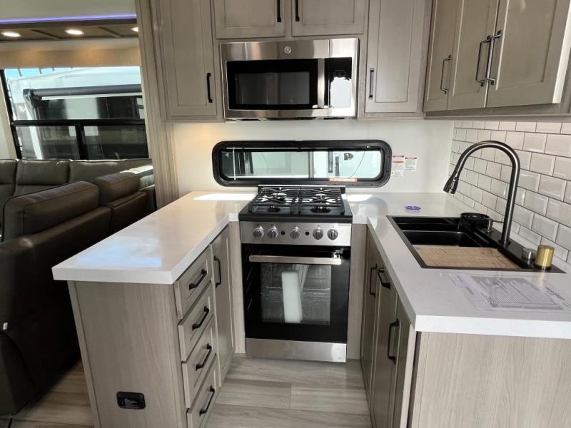 With any Momentum M-Class toy hauler by Grand Design, you will enjoy luxury at every turn! They have been constructed to a superior standard with a thermal roof design, triple insulated main floor and garage floor, and a Rail-Tite underbelly seal that will allow you to camp in all elements. Each model also features a, 8' 5" wide body chassis with a wide rail design, no wheel wheels, and a dovetail entry for easier loading. The Stealth A/C system provides maximum cooling power, and the CRE3000 suspension system means you can enjoy a smooth tow each time. You will love the luxurious interior with a professional grade stainless steel cooktop, interior color changing LED accent lighting, a fiberglass shower with a glass door, and solid surface countertops.