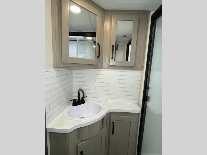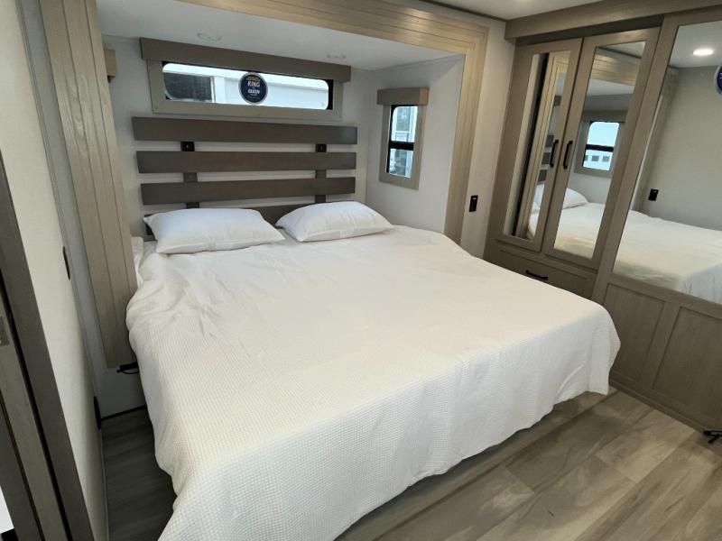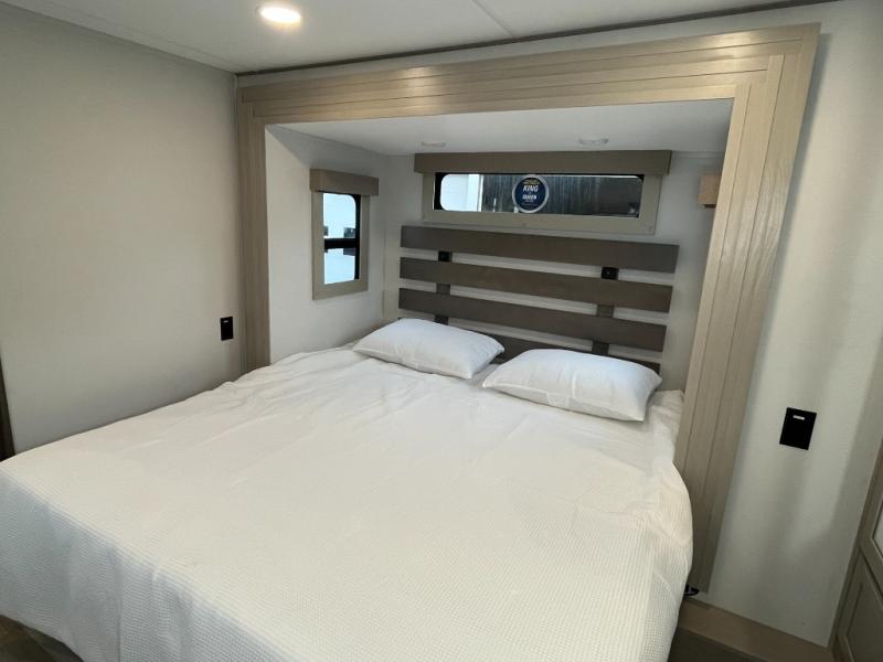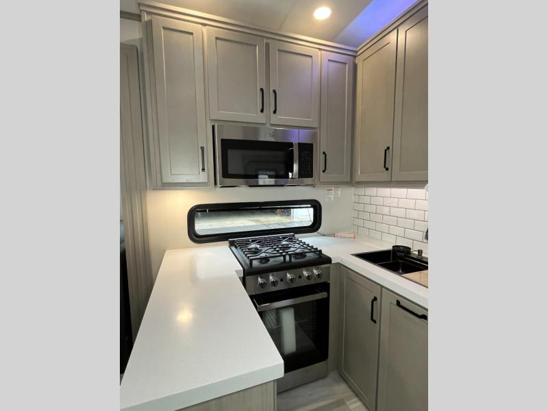With any Momentum M-Class toy hauler by Grand Design, you will enjoy luxury at every turn! They have been constructed to a superior standard with a thermal roof design, triple insulated main floor and garage floor, and a Rail-Tite underbelly seal that will allow you to camp in all elements. Each model also features a, 8' 5" wide body chassis with a wide rail design, no wheel wheels, and a dovetail entry for easier loading. The Stealth A/C system provides maximum cooling power, and the CRE3000 suspension system means you can enjoy a smooth tow each time. You will love the luxurious interior with a professional grade stainless steel cooktop, interior color changing LED accent lighting, a fiberglass shower with a glass door, and solid surface countertops.