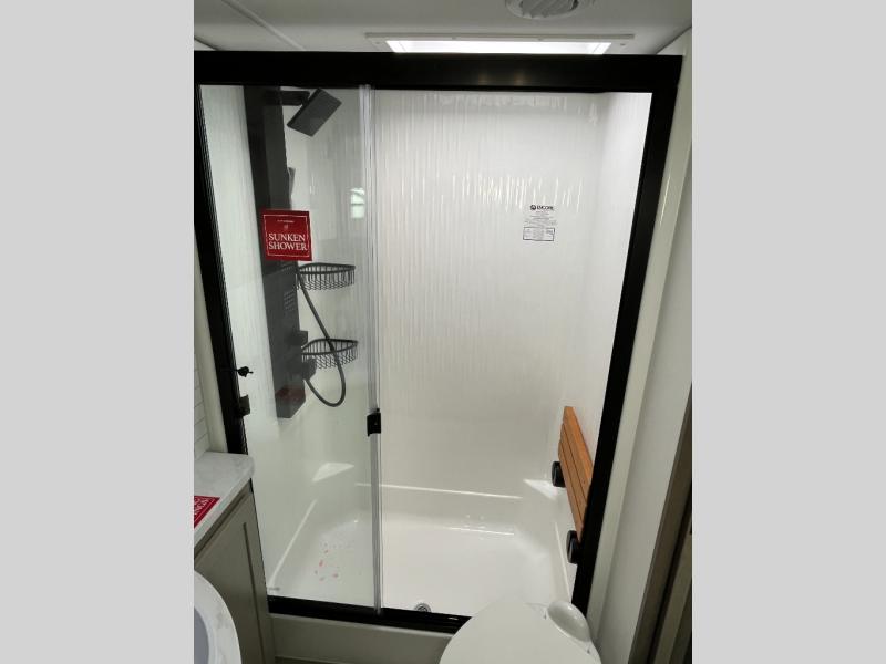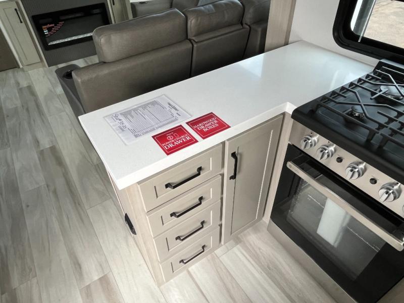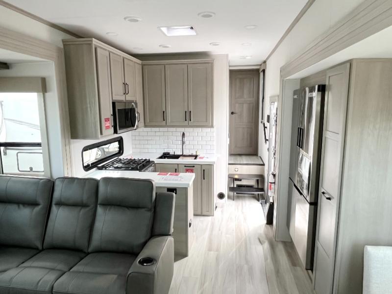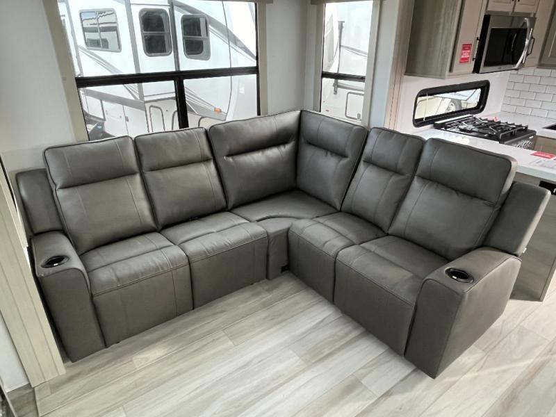 With any Momentum M-Class toy hauler by Grand Design, you will enjoy luxury at every turn! They have been constructed to a superior standard with a thermal roof design, triple insulated main floor and garage floor, and a Rail-Tite underbelly seal that will allow you to camp in all elements. Each model also features a, 8' 5" wide body chassis with a wide rail design, no wheel wheels, and a dovetail entry for easier loading. The Stealth A/C system provides maximum cooling power, and the CRE3000 suspension system means you can enjoy a smooth tow each time. You will love the luxurious interior with a professional grade stainless steel cooktop, interior color changing LED accent lighting, a fiberglass shower with a glass door, and solid surface countertops.