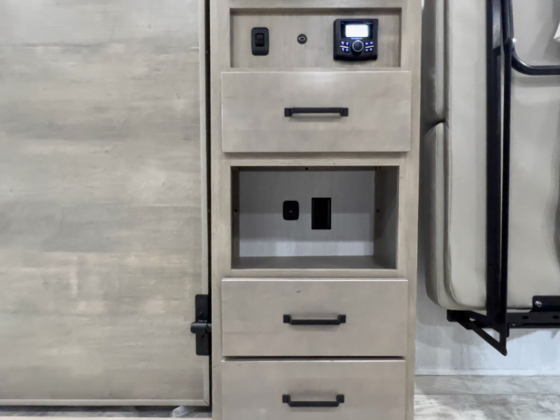 - Versatile sleeping and seating space with a queen Murphy bed and TV prep for movie nights.