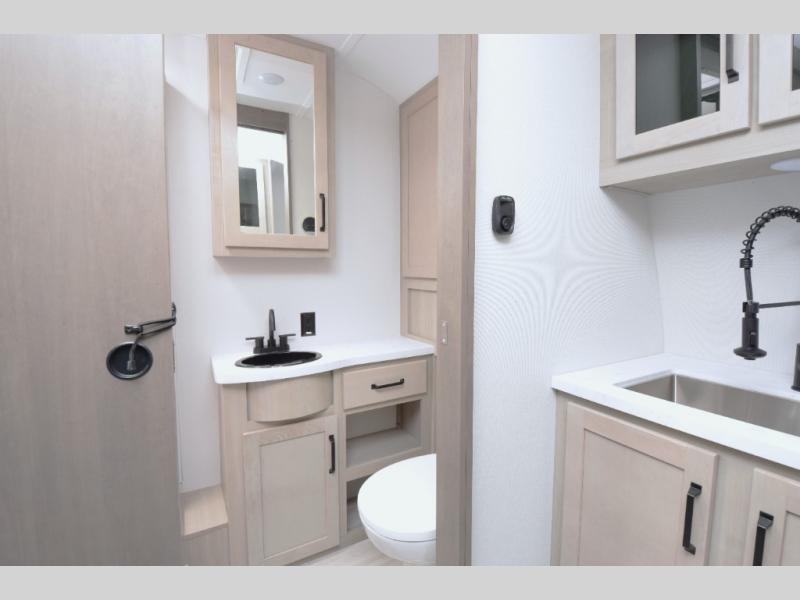 Garage Pull Down Screen, 8 Cu. Ft. 12V Refrigerator, Power Vent in Bath - Campers Inn RV of South Louisville 502-955-7484