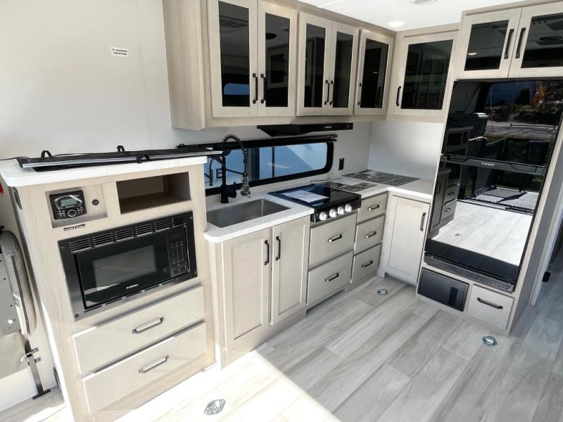 The Momentum MAV toy hauler travel trailers by Grand Design are designed to provide exactly what you need. The spacious garage provides tons of cargo space, with no wheel wells to get in the way. Additional storage includes magnetic storage door catches, underbed storage with a gas strut lift, and overhead consoles throughout. Conveniences like motion sensor lights and USB outlets will make your life easier, and you will be comfortable in all seasons with the 30K BTU furnace plus 15K BTU ducted air conditioning. The standard Solar Package comes with a 180W solar panel, a 40 Amp charge controller with Bluetooth, and a 12V refrigerator so you can go off-grid when the adventure calls for it.
