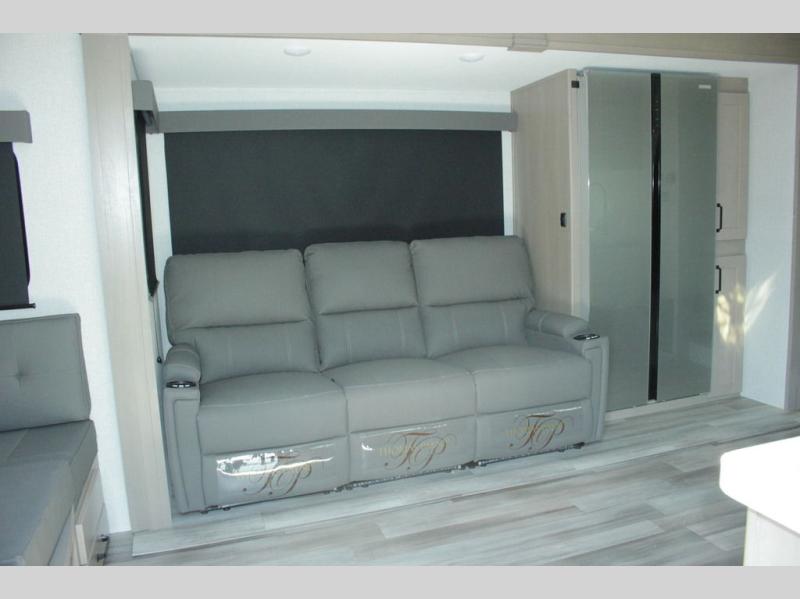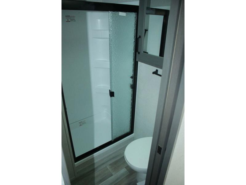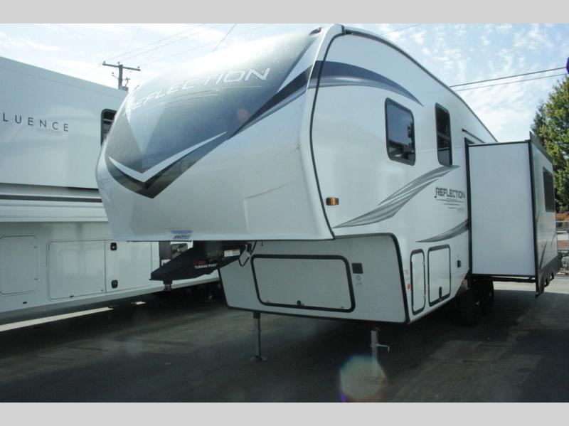 Feel right at home in this Reflection 150 Series with a private bedroom that includes a walk-around queen bed with storage on each side, windows, and a space savings sliding door. The full bathroom offers a walk-in shower, storage for your linens and a sliding door for easy access. When you get hungry, the cook will have an L-shaped kitchen area to make meals, plus full amenities including a 30" microwave, a flip-up counter extension, a pantry for your dry goods and a 16 cu. ft. refrigerator to store lots of food and cold beverages. You can dine at the rear U-shaped dinette lounge and enjoy the view out of all the windows or outside under the 18' electric awning. And the 78" theatre seating will be a nice place to relax and watch the 40" LED HDTV.