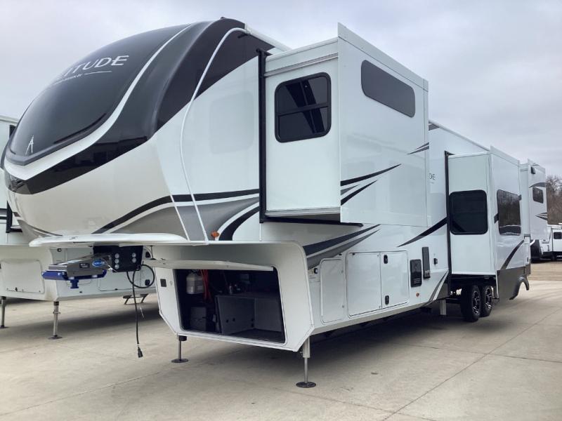 Meet the 2025 Solitude 390RK—where home-style comfort meets the wild outdoors. With a bold rear kitchen layout, spacious living room, and thoughtful design from top to bottom, this fifth wheel is your ticket to full-time travel or extended seasonal stays in total style.
