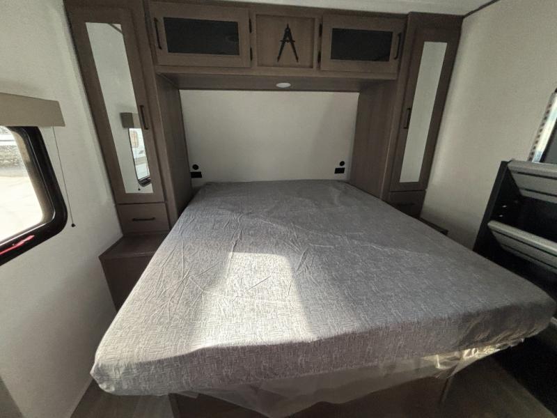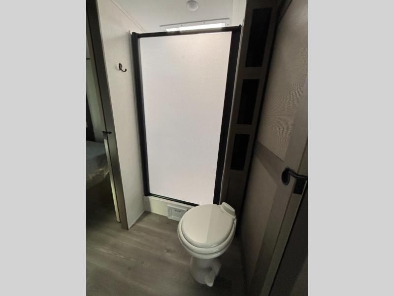 Your crew of eight will love camping in this spacious travel trailer! There are double-size bunks in the back with step storage and an added wardrobe for your guests' things plus exterior storage for camp gear galore. A walk-thru bath will create a front master bedroom you are sure to love, especially with its queen bed, wardrobe storage, and private exterior entry door! The main living area will be a favorite place to hang out with its U-shaped dinette, theater seating and 32" TV. If the weather is nice, you may just find yourselves outdoors since there is a rear exterior griddle and 1.7 cu. ft. refrigerator!