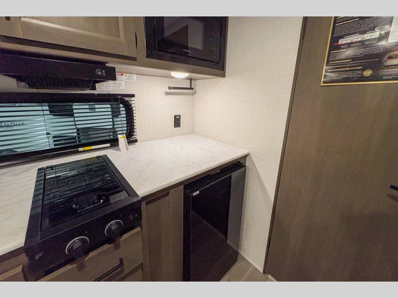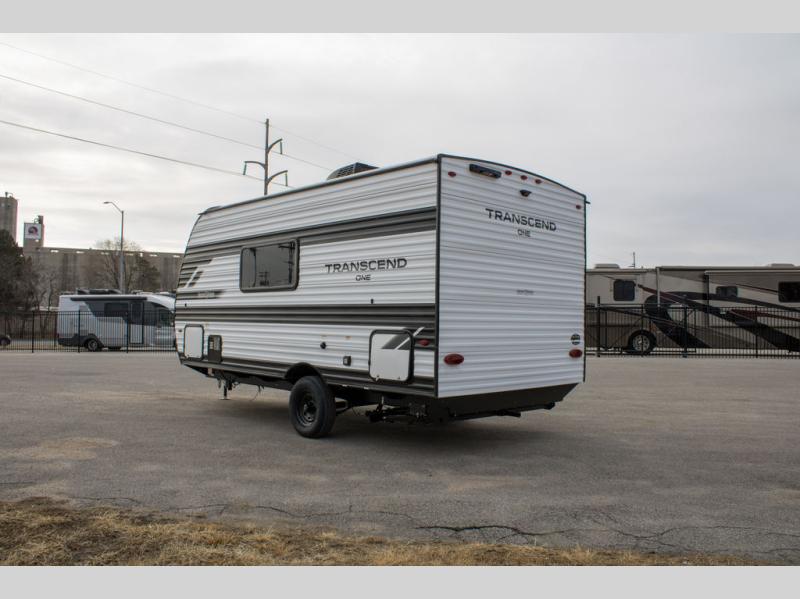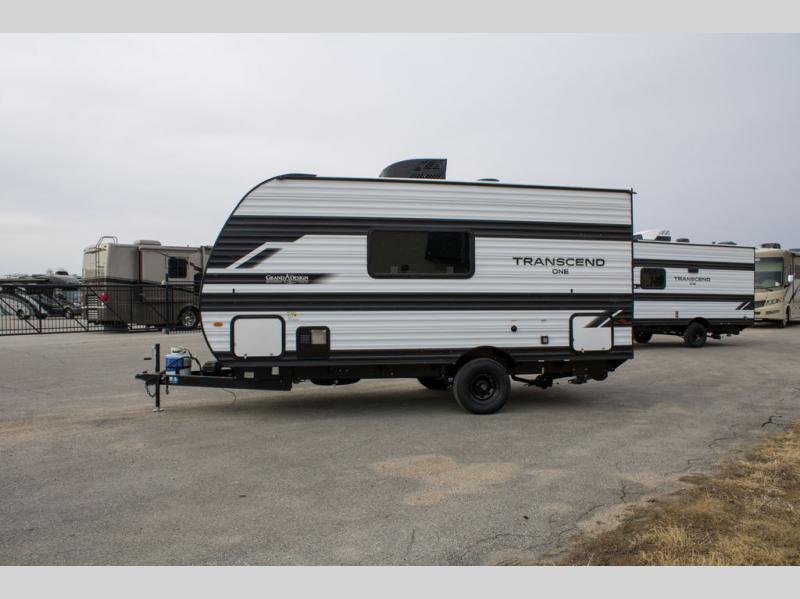 With any Transcend One travel trailer by Grand Design, you will enjoy lightweight towing thanks to their single-axle. There are many interior comforts to make camping easier than ever, such as recessed lighting, residential countertops, and a 6' 6" interior height. Each model is constructed with a heated and enclosed underbelly with suspended tanks, a moisture barrier floor enclosure, and Thermofoil over the roof and front cap for added protection. And a JBL sound system will let you listen to tunes as you visit under the power awning with a Fusion light!