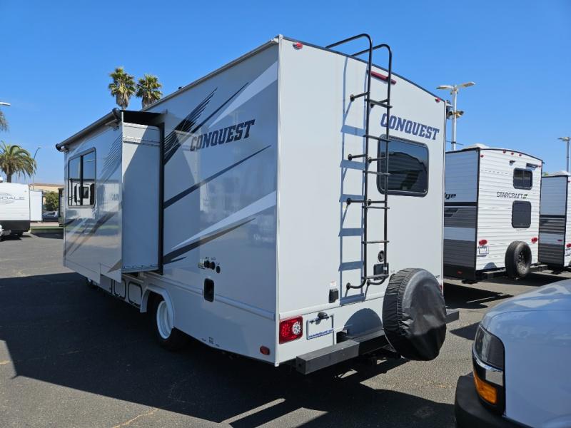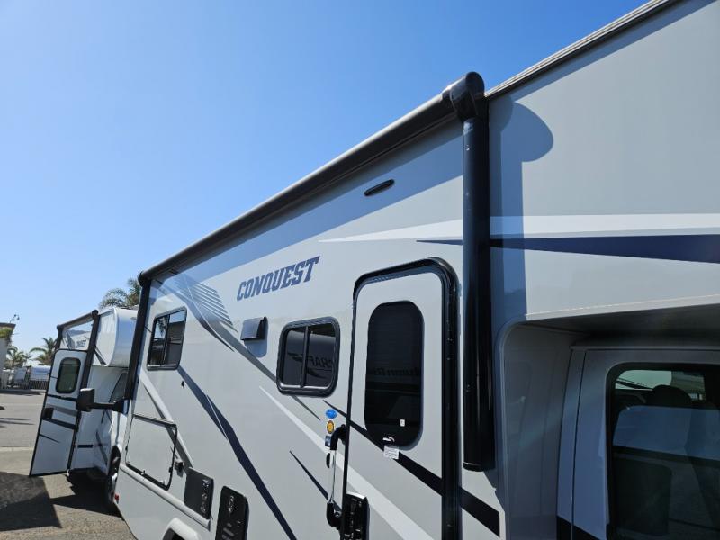 Each one of these Gulf Stream RV Conquest Class C gas motorhomes is built with a Cradle of Strength® on either the Ford E350 or E450 chassis depending on the model! Their construction also consists of a welded aluminum perimeter frame, an EPDM rubber roof, and high gloss white fiberglass sidewalls with Azdel substrate to prevent rotting. The included Conquest Luxury Package comes with vinyl flooring throughout for an easier clean, upgraded designer graphics, and a multimedia center with a 9" screen, Apple CarPlay and Android Auto and an AM/FM stereo. The exterior is just as accommodating with its hot and cold shower, 7,500 lb. hitch, electric awning with LED lights, and more!