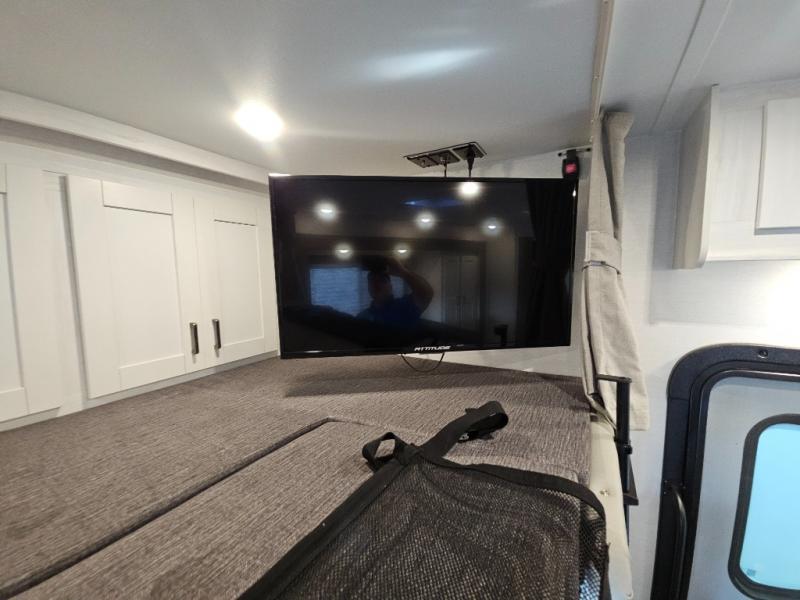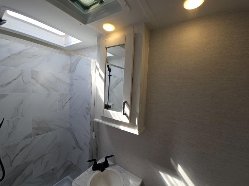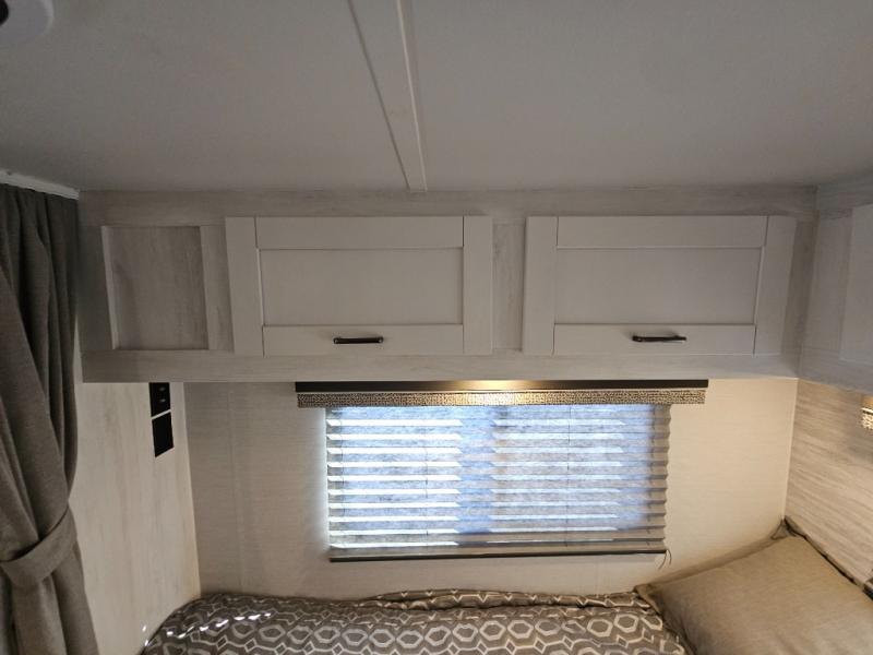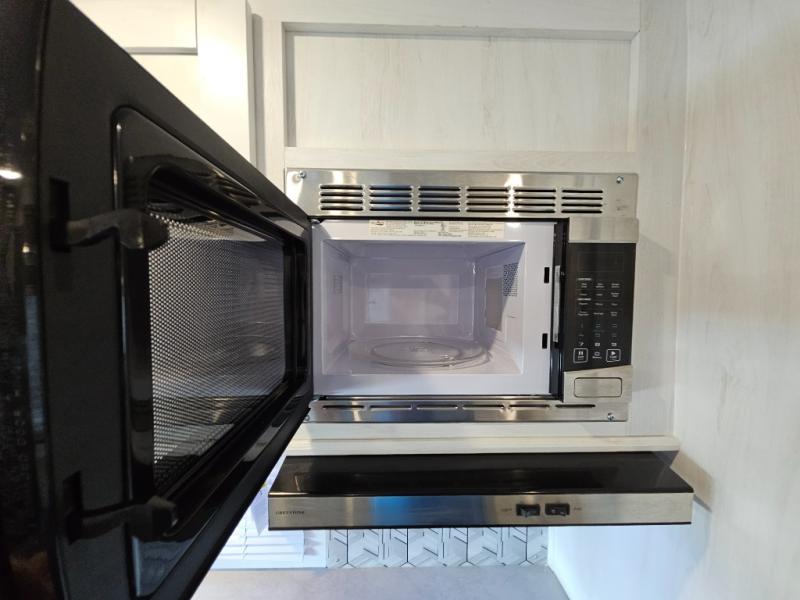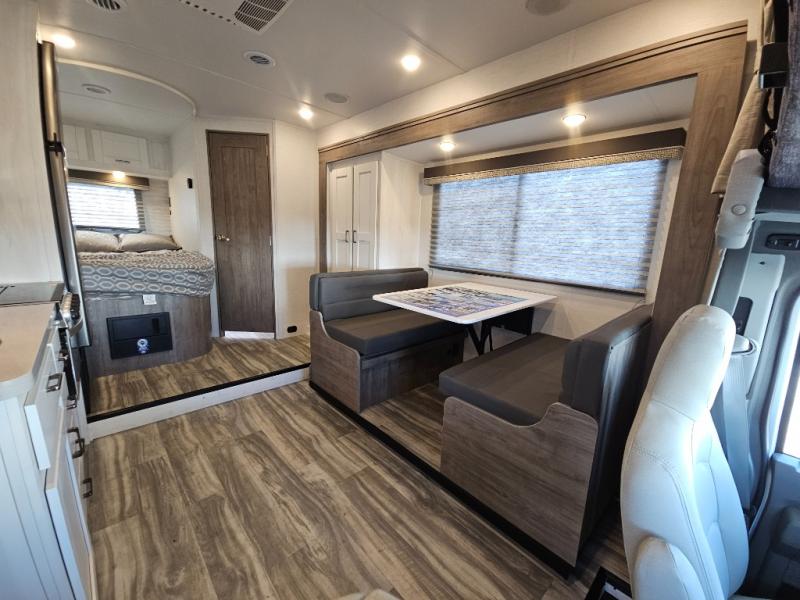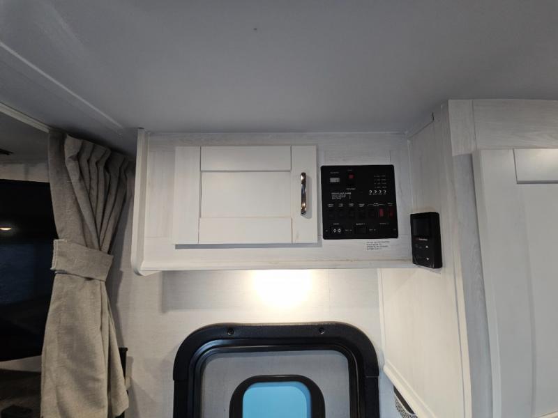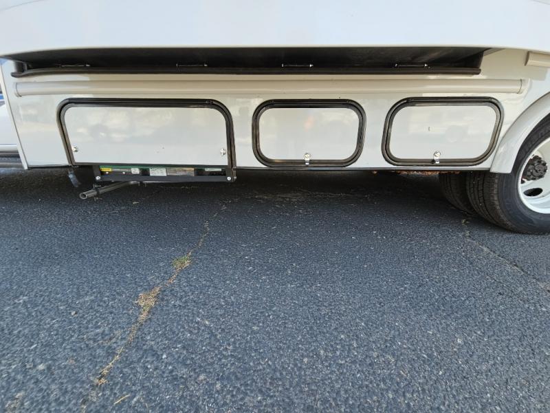 If you enjoy traveling the countryside during the day and pulling off into your favorite campground at night, then check out the comfortable accommodations this motorhome has to offer. For your group of five, you will have enough sleeping space between the RV queen bed in the rear, the overhead bunk above the cab, and the booth dinette. The kitchen provides everything you will need to cook all your meals and store leftovers, plus the dinette allows you to eat inside without worrying about bugs swarming you. The electric awning offers another living space outdoors, and it comes with LED lights so that you can party with the neighbors.