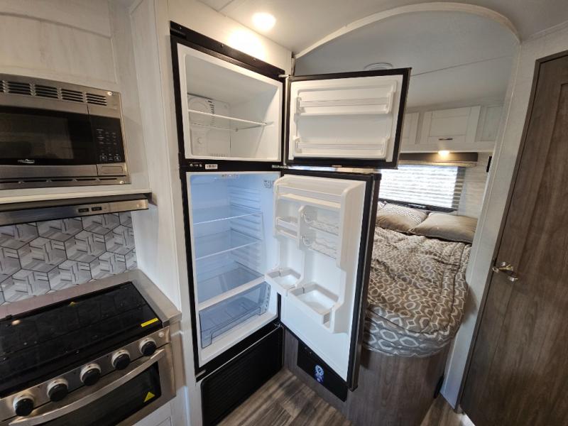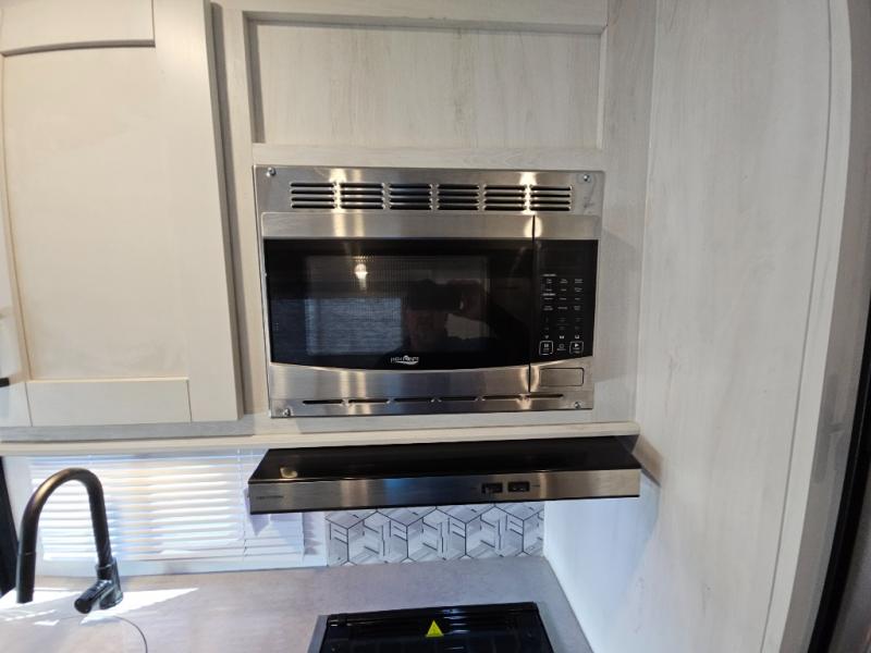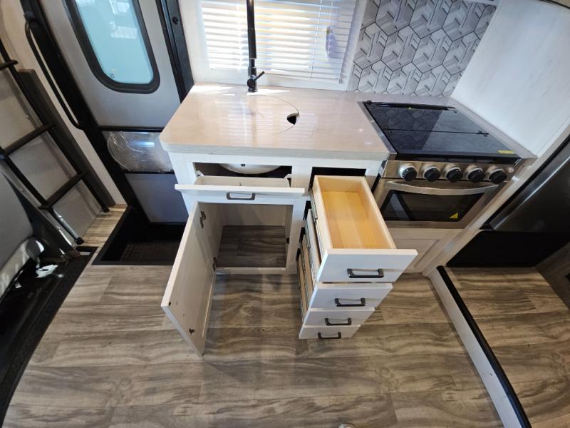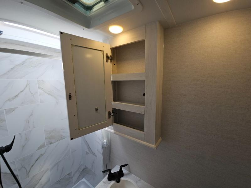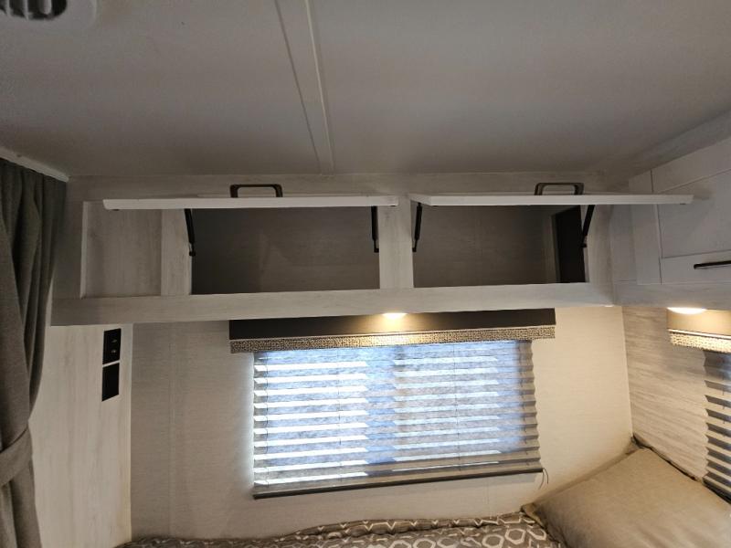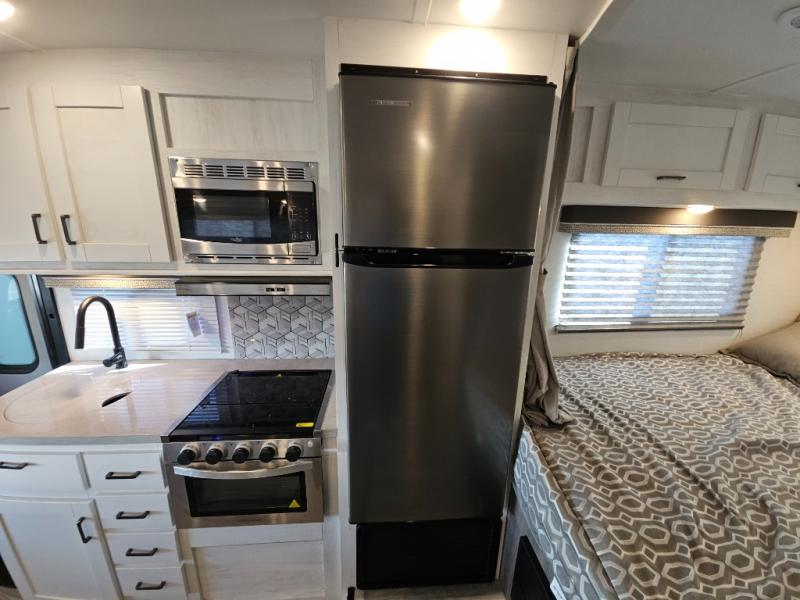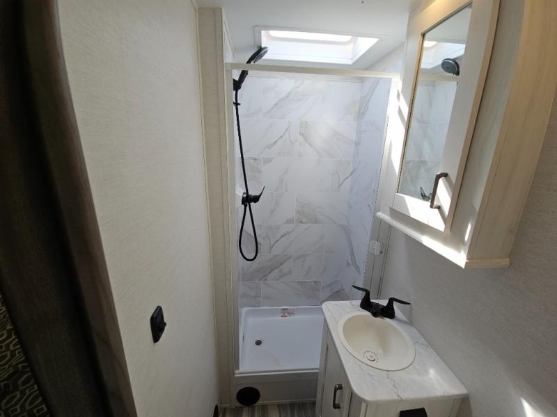 If you enjoy traveling the countryside during the day and pulling off into your favorite campground at night, then check out the comfortable accommodations this motorhome has to offer. For your group of five, you will have enough sleeping space between the RV queen bed in the rear, the overhead bunk above the cab, and the booth dinette. The kitchen provides everything you will need to cook all your meals and store leftovers, plus the dinette allows you to eat inside without worrying about bugs swarming you. The electric awning offers another living space outdoors, and it comes with LED lights so that you can party with the neighbors.