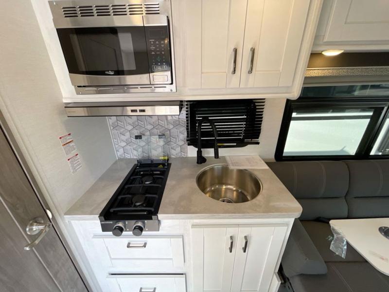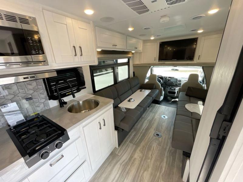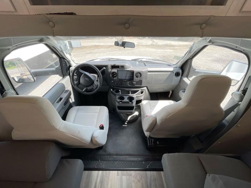 With any Yellowstone Cruiser Class C gas motorhome by Gulf Stream, you will enjoy comfort at every turn. There is a one-piece radius roof, a laminated steel-frame floor with an underbelly, and high-gloss Harbor Grey fiberglass walls with Azdel for added durability. You will stay powered up thanks to the 4.0 kW enclosed generator, plus there is a 25,000 BTU gas forced-air furnace and 13,500 BTU roof A/C to keep you comfortable. Each model includes vinyl flooring throughout, soft pleated privacy shades, designer window treatments, and a skydome skylight in the shower for more natural lighting and standing room!