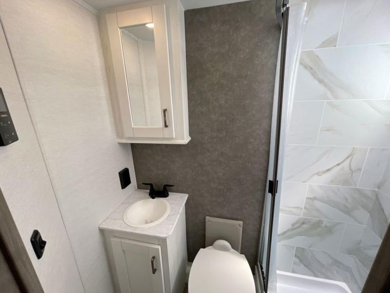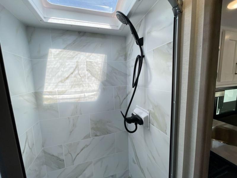 Whether you enjoy tailgating at events or games, traveling to see friends, or meeting a group at a local campground, this coach offers comfort for you to enjoy everything from relaxing, sleeping, eating and staying clean! The 2-way driver and passenger seats are comfortable just like the two soft touch jackknife sofas that offer seating during the daytime and sleeping space at night. The cook will have full amenities to make meals, plus a refrigerator to store leftovers. You will find the full bathroom is super convenient while on the road or at your destination, and the wardrobe is just outside the door to keep your clothes wrinkle-free.