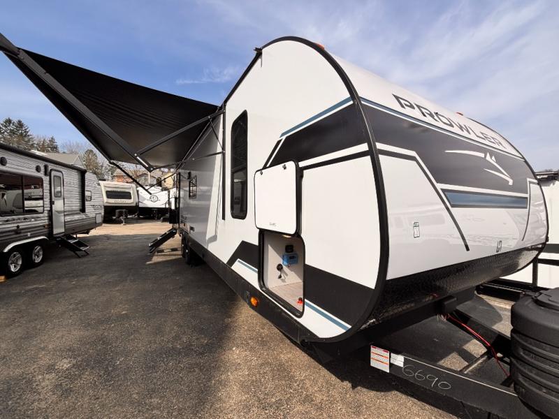 Get ready for comfortable and easy camping with the Prowler travel trailers by Heartland. These models feature durable construction with a performastructure aluminum front wall, a cambered structural steel I-beam frame, and a fully walkable roof. The MEGA bright pass-through storage features 52 cu. ft. of exterior storage with mega sized access doors, LED lights, and a finished interior to keep your gear secure. You'll fall in love with the at-home kitchen the includes Duralast countertops, a residential refrigerator, plus a stainless steel double bowl undermount sink for easy clean-up. These travel trailers also feature panoramic windows, an EZ clean interior, USB charging ports throughout, and many more comforts! Don't let the Prowler travel trailers slip away. Don't let the Prowler travel trailers slip away. Choose your favorite floorplan today!