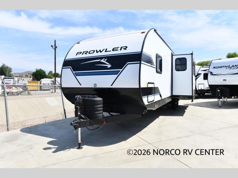 Get ready for comfortable and easy camping with the Prowler travel trailers by Heartland. These models feature durable construction with a performastructure aluminum front wall, a cambered structural steel I-beam frame, and a fully walkable roof. The MEGA bright pass-through storage features 52 cu. ft. of exterior storage with mega sized access doors, LED lights, and a finished interior to keep your gear secure. You'll fall in love with the at-home kitchen the includes Duralast countertops, a residential refrigerator, plus a stainless steel double bowl undermount sink for easy clean-up. These travel trailers also feature panoramic windows, an EZ clean interior, USB charging ports throughout, and many more comforts! Don't let the Prowler travel trailers slip away. Don't let the Prowler travel trailers slip away. Choose your favorite floorplan today!