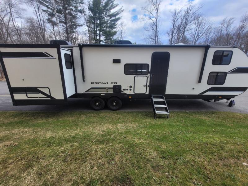 Get ready for comfortable and easy camping with the Prowler travel trailers by Heartland. These models feature durable construction with a performastructure aluminum front wall, a cambered structural steel I-beam frame, and a fully walkable roof. The MEGA bright pass-through storage features 52 cu. ft. of exterior storage with mega sized access doors, LED lights, and a finished interior to keep your gear secure. You'll fall in love with the at-home kitchen the includes Duralast countertops, a residential refrigerator, plus a stainless steel double bowl undermount sink for easy clean-up. These travel trailers also feature panoramic windows, an EZ clean interior, USB charging ports throughout, and many more comforts! Don't let the Prowler travel trailers slip away. Don't let the Prowler travel trailers slip away. Choose your favorite floorplan today!