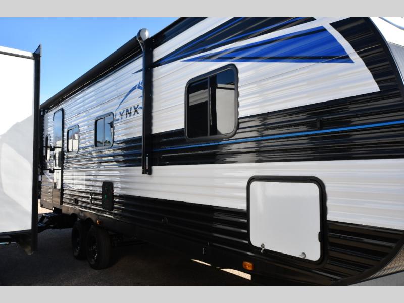 Get ready for comfortable and easy camping with the Prowler Lynx travel trailers by Heartland. Each model includes full bath and kitchen amenities, comfortable seating and sleeping spaces, and plenty of storage spaces that will help you keep camp gear and personal belongings clean and neat! The power awning with an LED light strip outdoors will provide shade when you need it, and the LED interior lights will keep your space well lit. These units also include USB ports to keep your electronics charge, a systems monitor panel, night shades in the living area and bedroom, plus many more conveniences to make life at the campground easier than ever!