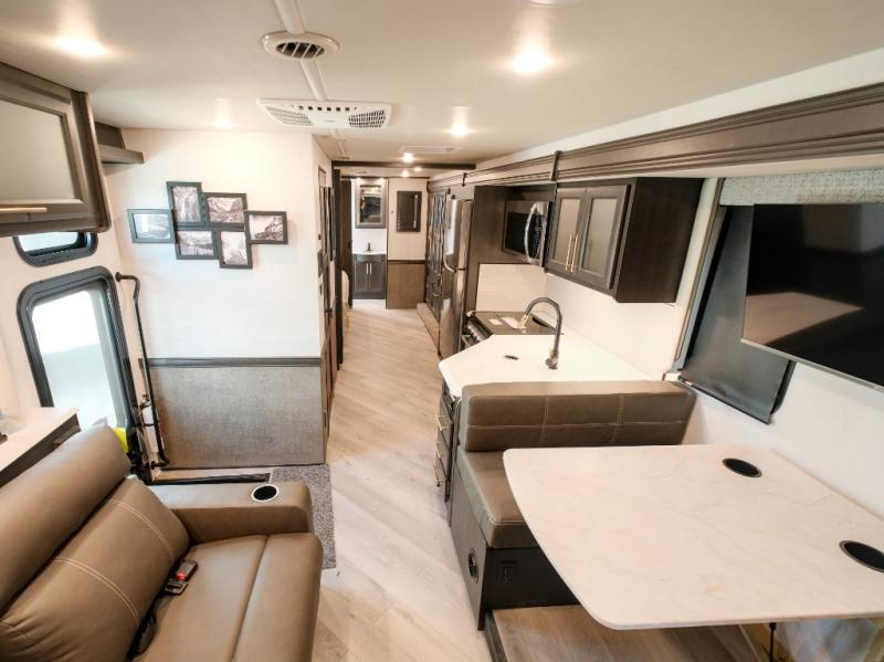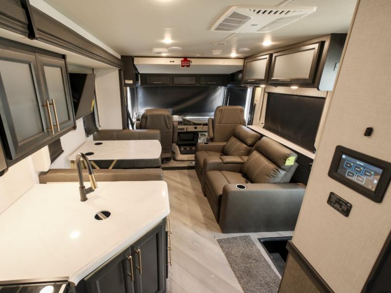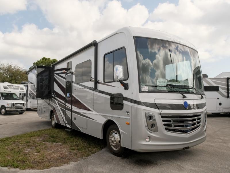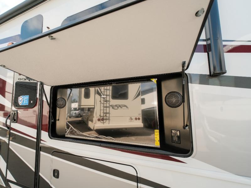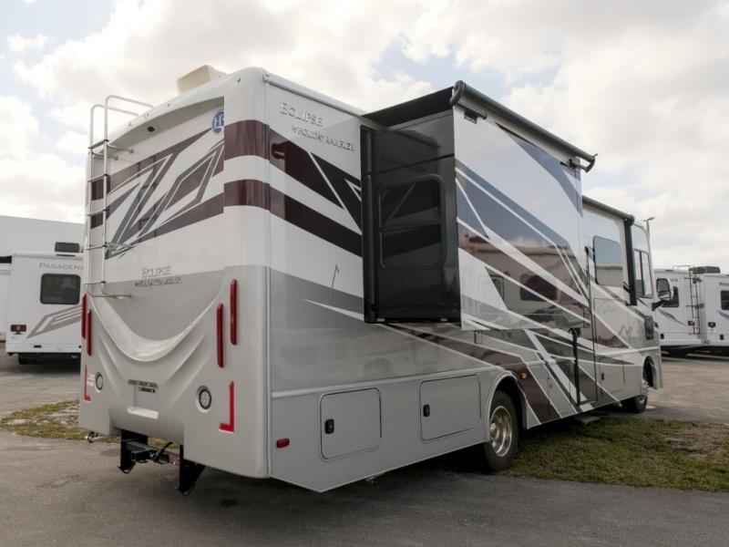 The Eclipse Class A gas motorhome by Holiday Rambler is packed with high-end features for an unforgettable RV experience. A 22,000 lb. chassis provides a strong foundation, and the Ford 7.3L V8 335HP engine will power your journeys near and far. You will love the smooth drive thanks to the tuned SACHS shocks and power assisted steering, and the full-body paint. The 10.1" capacitive touch screen stereo is sure to come in handy with its "always on" back-up camera, 2 USB ports, and two-zone speaker control, plus it includes built-in Bluetooth and is SiriusXM ready. You will enjoy the luxurious interior with vinyl tile flooring, stainless steel appliances, a glass shower door, plus a designer bedspread and pillows with shams. And don't overlook the exterior with its enclosed waste station, electric awning with LED lighting, automatic hydraulic leveling jacks, slide out awning toppers, and so much more!