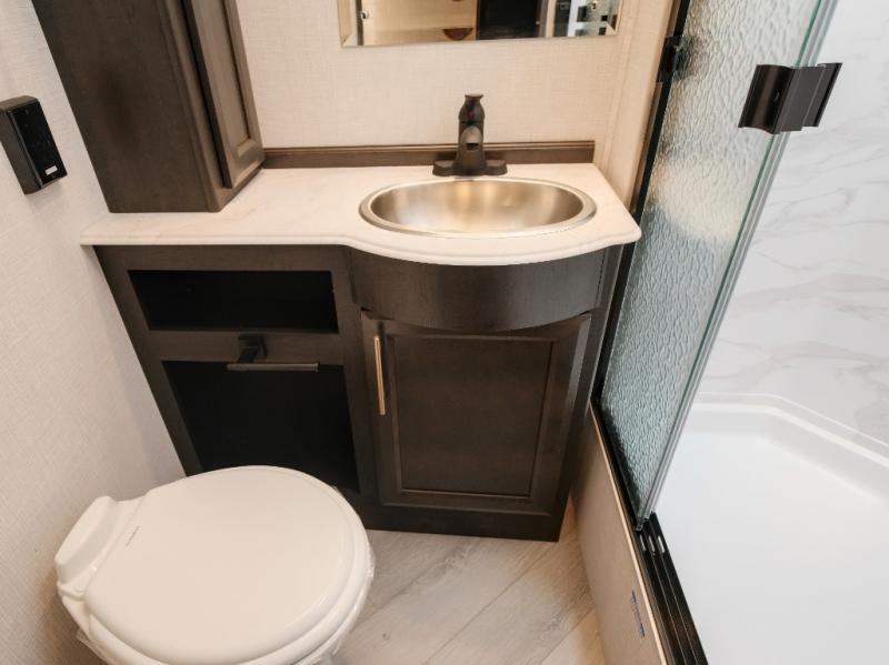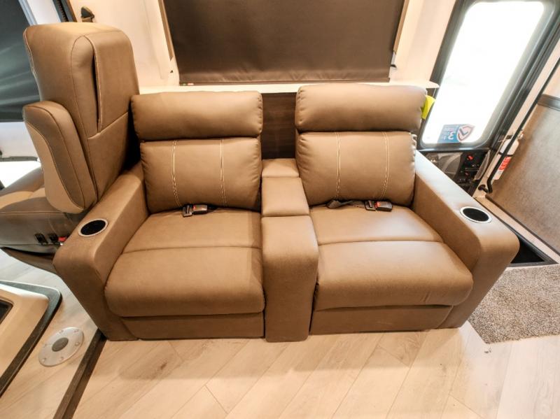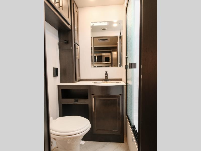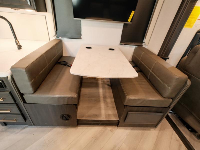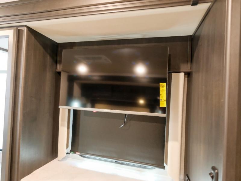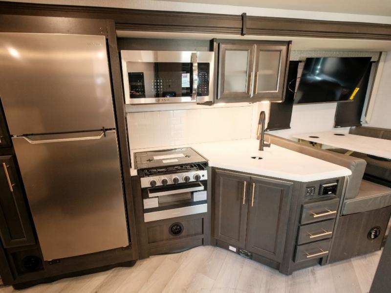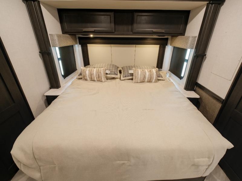 Traveling with friends and family has never been easier than in this spacious coach! You will find two slide outs plus two full baths for maximum convenience. The Serenity Series king bed will provide a great night's rest, while your guests take the Hide-A-Loft electric drop-down bed, the jackknife sofa, and the Dream Dinette. Once everyone is ready for the day, head to the kitchen to prepare eggs and bacon on the three burner cooktop, or use the stainless steel over-the-range microwave oven if you're on the go. You'll also appreciate the pantry and stainless steel residential refrigerator for food storage, plus the double bowl stainless steel sink for easy clean up.