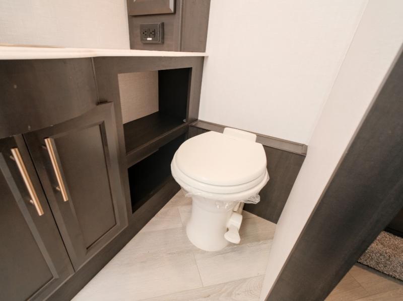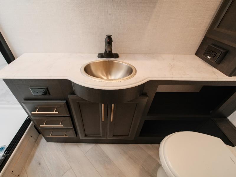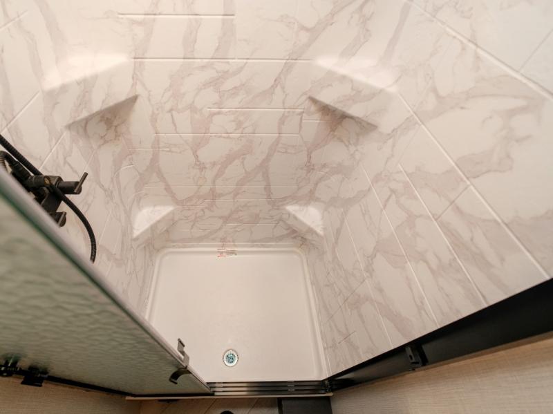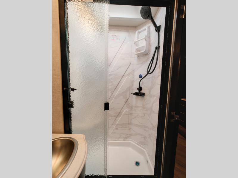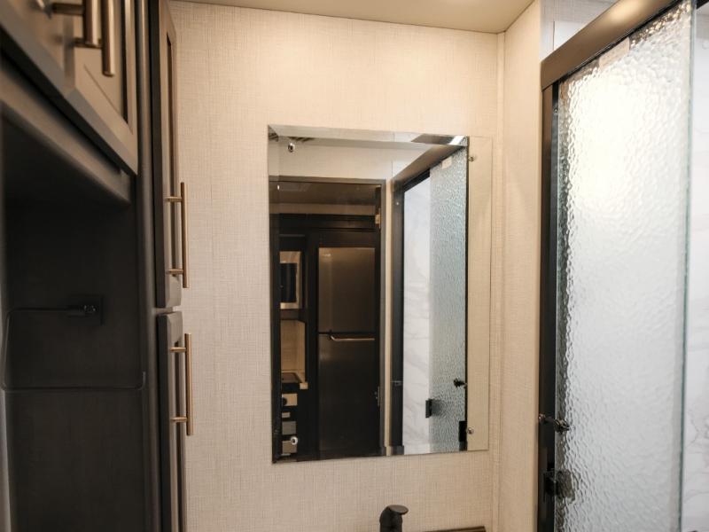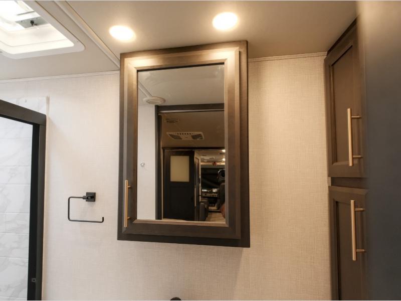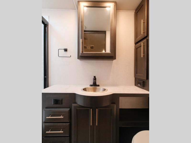 Traveling with friends and family has never been easier than in this spacious coach! You will find two slide outs plus two full baths for maximum convenience. The Serenity Series king bed will provide a great night's rest, while your guests take the Hide-A-Loft electric drop-down bed, the jackknife sofa, and the Dream Dinette. Once everyone is ready for the day, head to the kitchen to prepare eggs and bacon on the three burner cooktop, or use the stainless steel over-the-range microwave oven if you're on the go. You'll also appreciate the pantry and stainless steel residential refrigerator for food storage, plus the double bowl stainless steel sink for easy clean up.