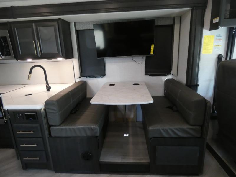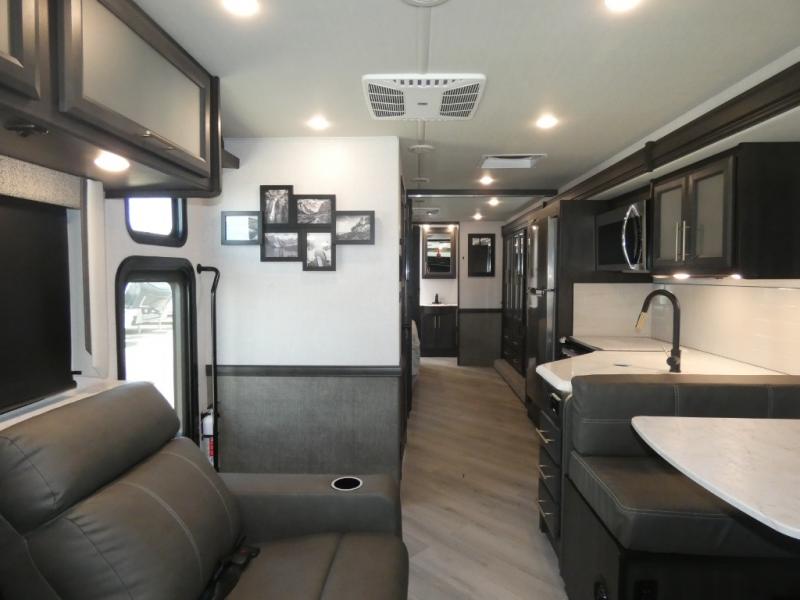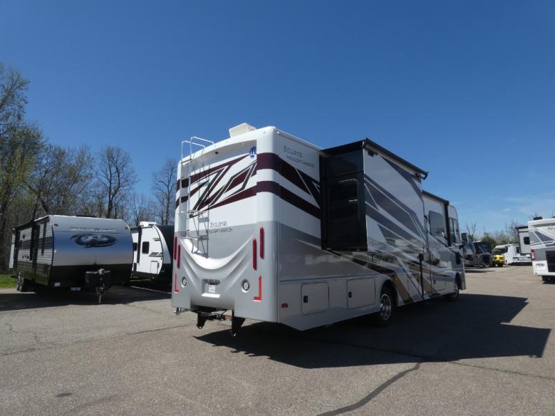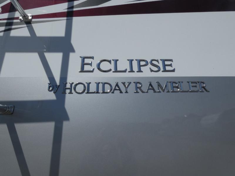 The Eclipse Class A gas motorhome by Holiday Rambler is packed with high-end features for an unforgettable RV experience. A 22,000 lb. chassis provides a strong foundation, and the Ford 7.3L V8 335HP engine will power your journeys near and far. You will love the smooth drive thanks to the tuned SACHS shocks and power assisted steering, and the full-body paint includes three design options to your liking. The 10.1" capacitive touch screen stereo is sure to come in handy with its "always on" back-up camera, 2 USB ports, and two-zone speaker control, plus it includes built-in Bluetooth and is SiriusXM ready. You will enjoy the luxurious interior with vinyl tile flooring, stainless steel appliances, a glass shower door, plus a designer bedspread and pillows with shams. And don't overlook the exterior with its enclosed waste station, electric awning with LED lighting, automatic hydraulic leveling jacks, slide out awning toppers, and so much more!