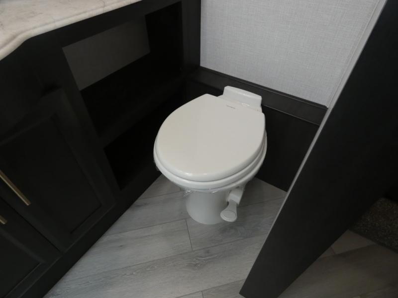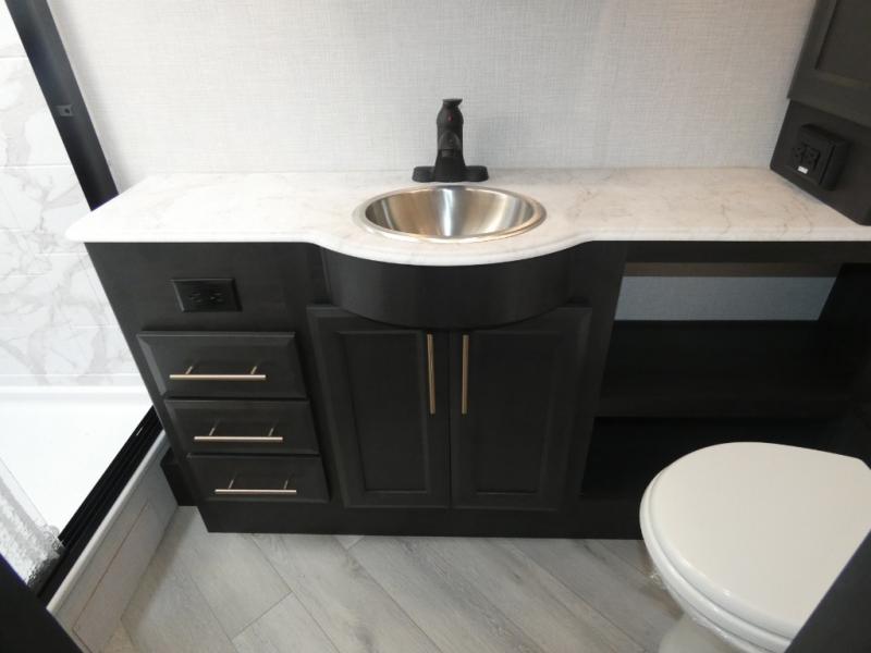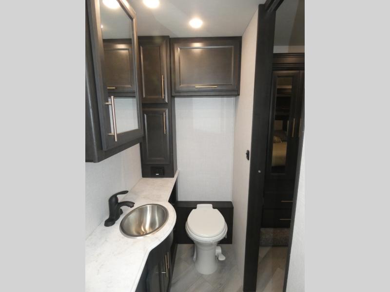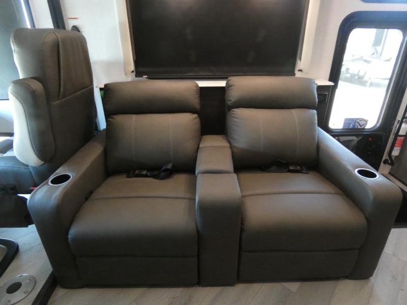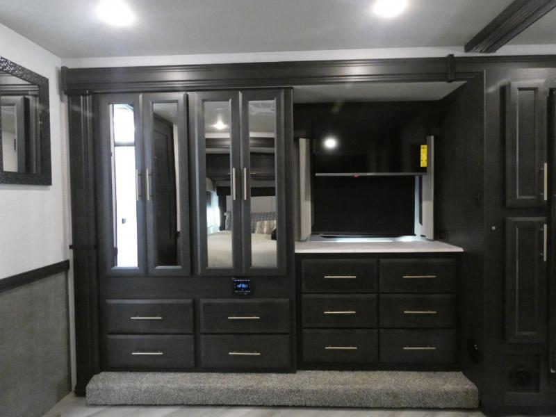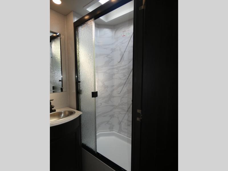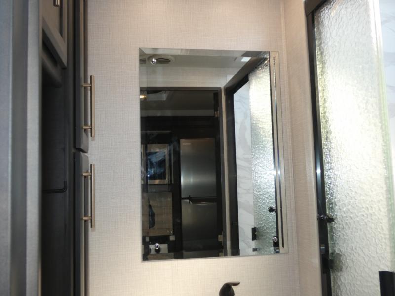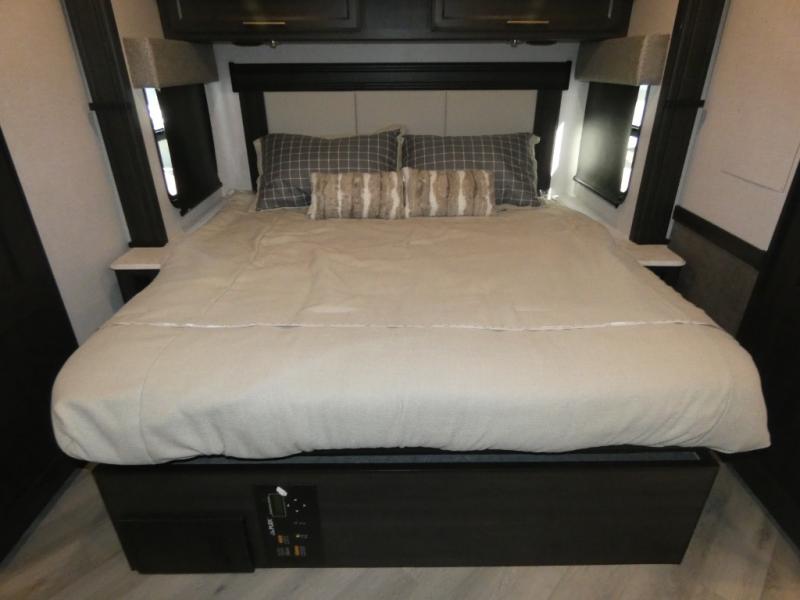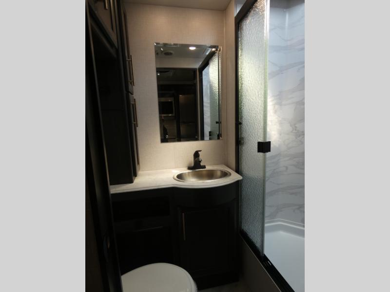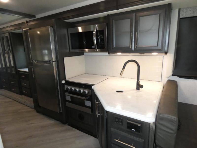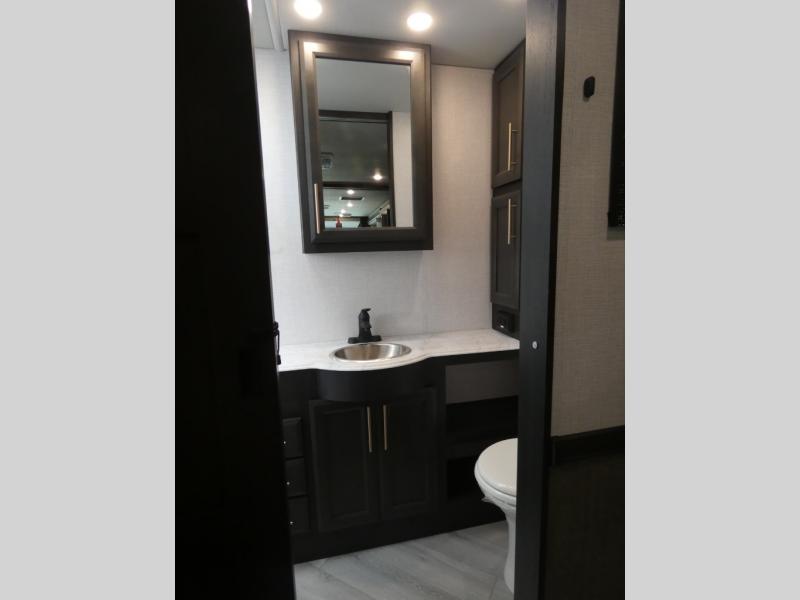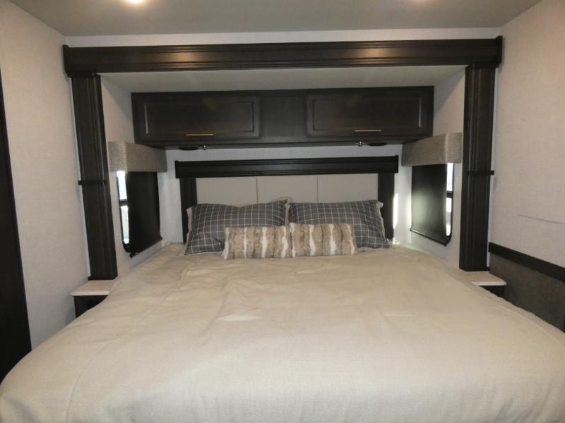 Traveling with friends and family has never been easier than in this spacious coach! You will find two slide outs plus two full baths for maximum convenience. The Serenity Series king bed will provide a great night's rest, while your guests take the Hide-A-Loft electric drop-down bed and the Dream Dinette. Once everyone is ready for the day, head to the kitchen to prepare eggs and bacon on the three burner cooktop, or use the stainless steel over-the-range microwave oven if you're on the go. You'll also appreciate the pantry and stainless steel residential refrigerator for food storage, plus the double bowl stainless steel sink for easy clean up.