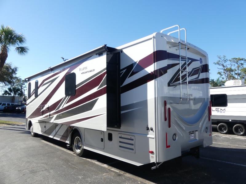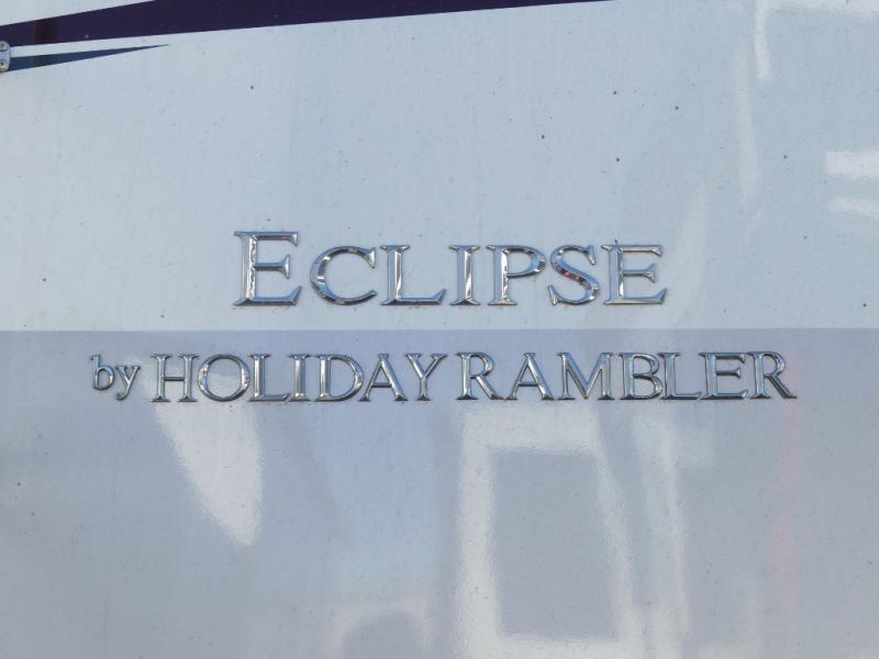 The Eclipse Class A gas motorhome by Holiday Rambler is packed with high-end features for an unforgettable RV experience. A 22,000 lb. chassis provides a strong foundation, and the Ford 7.3L V8 335HP engine will power your journeys near and far. You will love the smooth drive thanks to the tuned SACHS shocks and power assisted steering, and the full-body paint. The 10.1" capacitive touch screen stereo is sure to come in handy with its "always on" back-up camera, 2 USB ports, and two-zone speaker control, plus it includes built-in Bluetooth and is SiriusXM ready. You will enjoy the luxurious interior with vinyl tile flooring, stainless steel appliances, a glass shower door, plus a designer bedspread and pillows with shams. And don't overlook the exterior with its enclosed waste station, electric awning with LED lighting, automatic hydraulic leveling jacks, slide out awning toppers, and so much more!