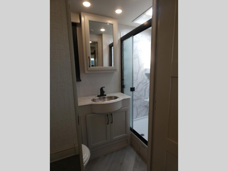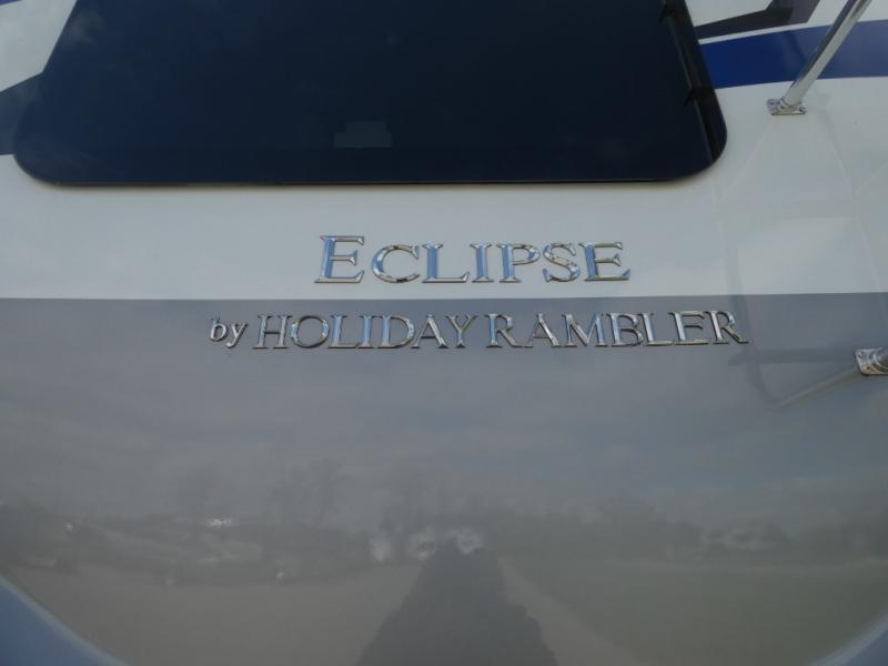 The Eclipse Class A gas motorhome by Holiday Rambler is packed with high-end features for an unforgettable RV experience. A 22,000 lb. chassis provides a strong foundation, and the Ford 7.3L V8 335HP engine will power your journeys near and far. The 10.1" capacitive touch screen stereo is sure to come in handy with its "always on" back-up camera, 2 USB ports, and two-zone speaker control, plus it includes built-in Bluetooth and is SiriusXM ready. You will enjoy the luxurious interior with vinyl tile flooring, stainless steel appliances, a glass shower door, plus a designer bedspread and pillows with shams. And don't overlook the exterior with its enclosed waste station, electric awning with LED lighting, automatic hydraulic leveling jacks, slide out awning toppers, and so much more!