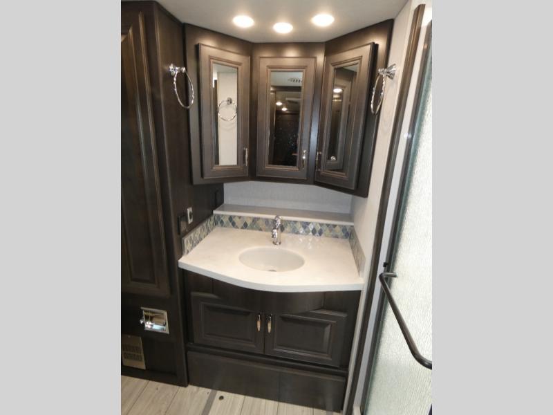 Experience luxury like never before in an Endeavor Class A diesel motorhome by Holiday Rambler. The exclusive Titan Bridge foundation with a Freightliner custom chassis XCM provides a durable coach you can enjoy for years to come, and the Cummins B6.7 engine will power your many excursions. An LED OptiView instrument panel comes standard for the driver, plus 6-way power, recline, and swivel seats and a color backup monitor for easy maneuvering. You will love having an Aqua-Hot 400D water heating system on board, along with a central vacuum system, multiplex wiring system, 100W solar panel, and many more convenient amenities. The interior is made to feel like home with porcelain tile flooring, polished solid surface galley countertops with lighting, spacious wardrobe storage, and a luxurious glass shower door in the bath. There are many more features to see outside that include an electric awnings with LED lighting, basement storage with LED lights, automatic hydraulic leveling jacks, and a King Universal stationary satellite to keep you connected wherever you go!