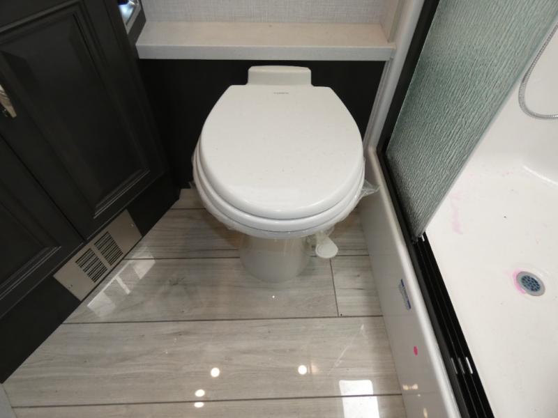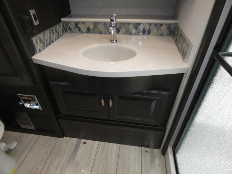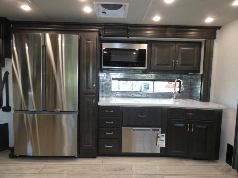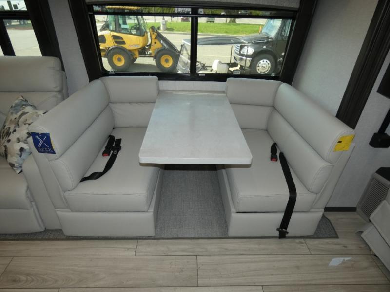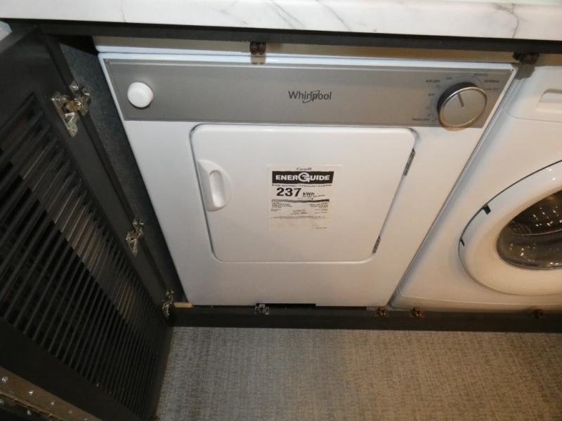 Looking to travel with friends and family in luxury? This coach provides space-saving convertible bunk beds with barn doors right across from the mid-coach full bathroom. The sofa sleeper with a twin mattress and the booth dinette allow you to relax and visit, plus the driver and passenger seats swivel for more seating in the main living and kitchen area. Everyone can watch the LED TV with a fireplace below and/or the LED TV over the cab, and there is another LED TV in the bedroom, plus an entertainment center with LED TV outside. The rear bathroom that is attached to the master bedroom has a wardrobe for your things, and the master bedroom allows you to sleep like a king on the slide out giving you more floor space. There is also a side-by-side washer/dryer that will keep everything clean while you're away. The kitchen offers stainless steel appliances, a convection microwave, a two burner induction cooktop and so much more. Start planning your trip today!