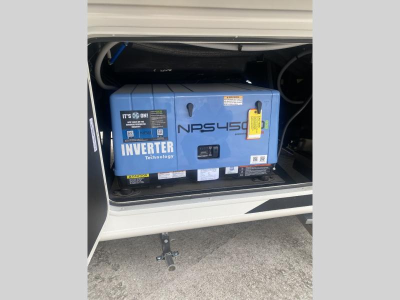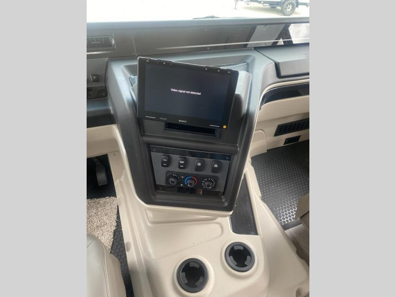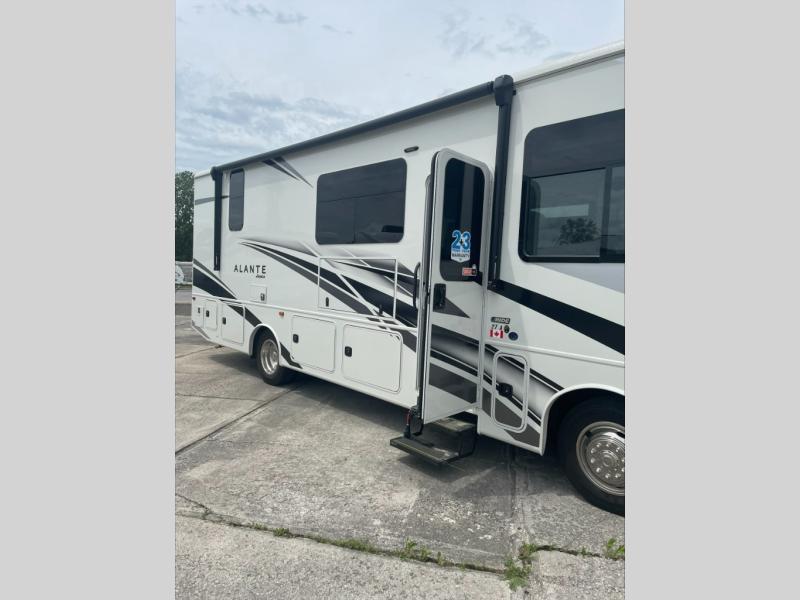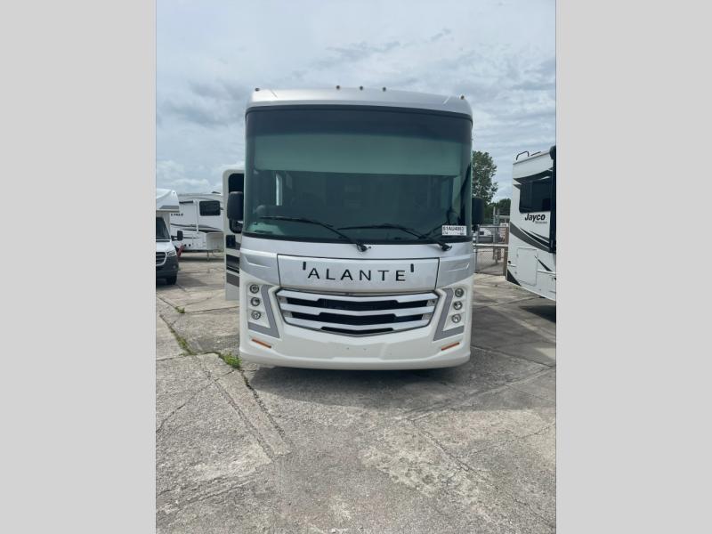 With any Alante Class A gas motorhome by Jayco, the mandatory Customer Value package provides JRide technology with a computer-balanced driveshaft ensuring smooth and efficient power transfer to the wheels, and SACHS shock absorbers offering independent adjustments to the road conditions. There is also a one-piece, seamless, crowned fiberglass roof, and an exterior entertainment center to watch shows and movies. The automatic hydraulic leveling jacks, 120 in. panoramic windshield, 200W solar panel, and the electric-powered entrance step will make traveling that much easier. And the interior equipment includes a Sony infotainment center with Apple CarPlay and Android Auto, a backup and side-view cameras for easy parking, plus a 6-way power driver seat for comfortable and safe driving. You will also love the power front privacy shade with manual side privacy shades, LED-lit hardwood fascia and countertops, a pop-up charging station in the kitchen and a USB port and wireless charging in the nightstands.
