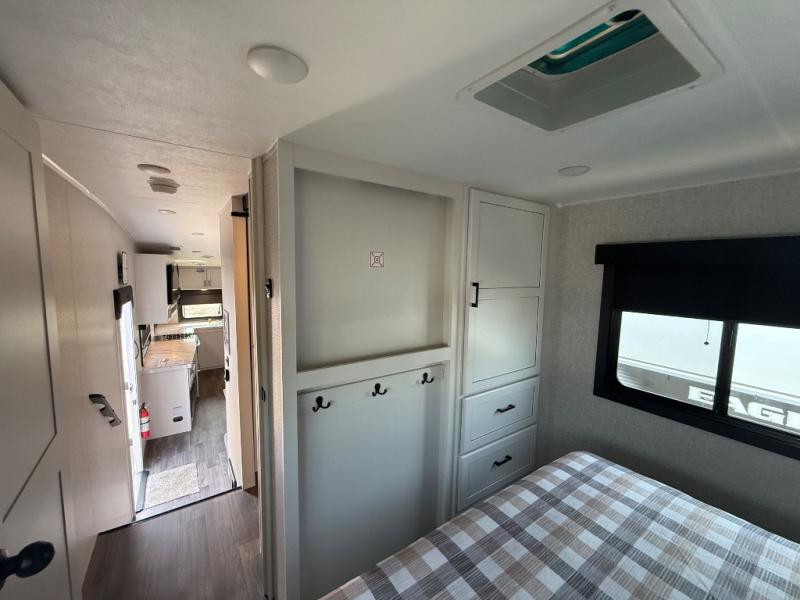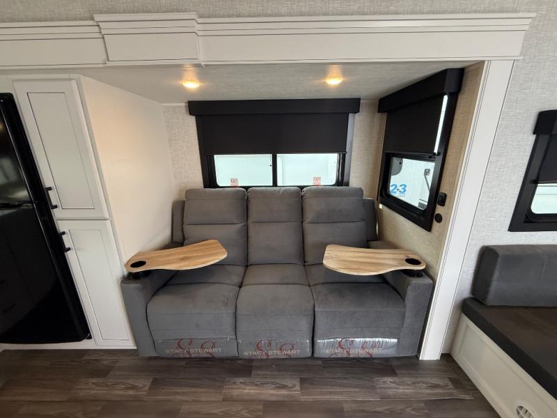 With any Eagle HT fifth wheel or travel trailer by Jayco you will enjoy a smooth drive thanks to the 4 Star Handling Package, Goodyear Endurance tires, and MORryde CRE-3000 rubberized suspension. The Customer Value Package includes amenities that are sure to make camping easier than ever, like the 60K on-demand water heater, Keyed-Alike lock system, 15,000 BTU "Whisper Quiet" A/C, and more. Handcrafted and glazed door/drawer fronts will make your space feel more like home, along with residential vinyl flooring throughout, GE appliances, and blackout roller shades with reflective side throughout to keep the sun out when you want to sleep in. Each model also includes a NuVo H2O water treatment system with filters included, interior and exterior "Blue Sync" audio connect with MB Quart Sound for your TV and phone, and 100% no floor vents for added comfort and convenience!