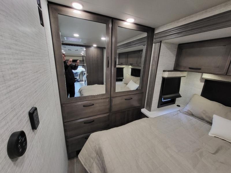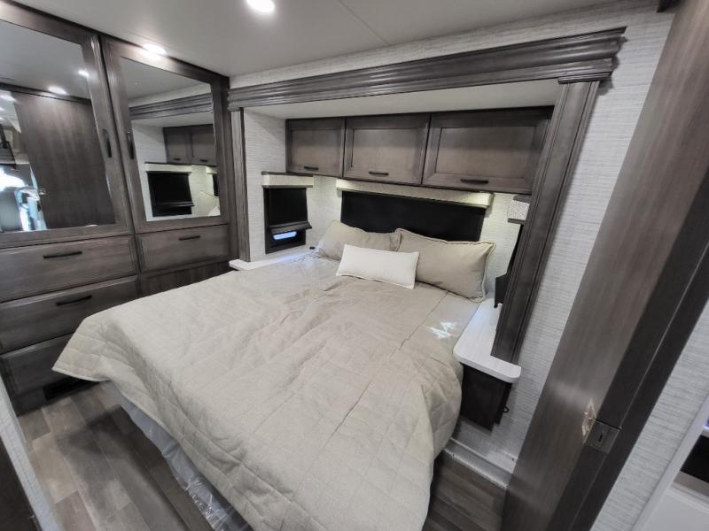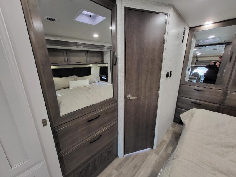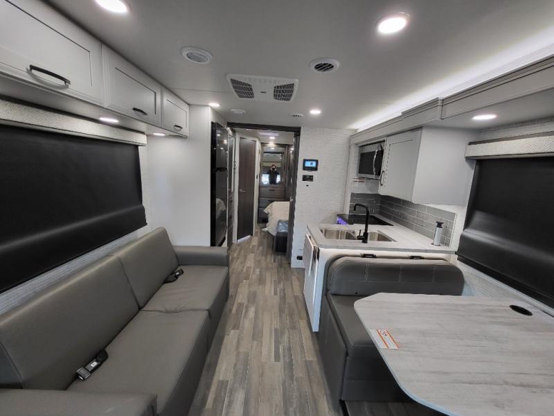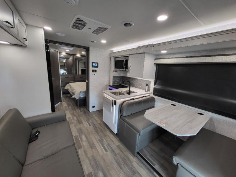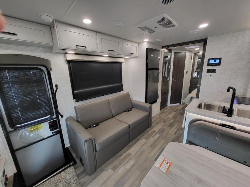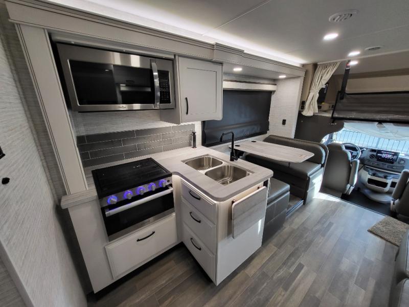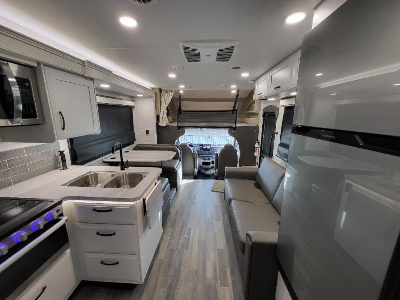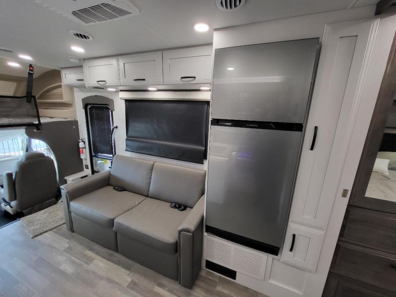 Trips across state lines just got sweeter in this motorhome for five to six. The swivel captain's seats can become a part of the living area once you park, and your guests can get comfortable on the 42" x 70" booth dinette or 68" jackknife sofa. There is a cab-over bunk the kids will love, and the LED HD Smart TV will allow you to enjoy movies. The chef of your group can prepare meals on the Furrion all-in-one cooktop and oven, and leftovers can go in the 10 cu. ft. 12V refrigerator. You will feel right at home in the bedroom suite with its king bed slide out, large wardrobe, and access to the rear corner bathroom. Get started on your getaway today in this cozy Class C motorhome!