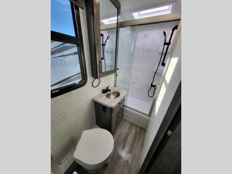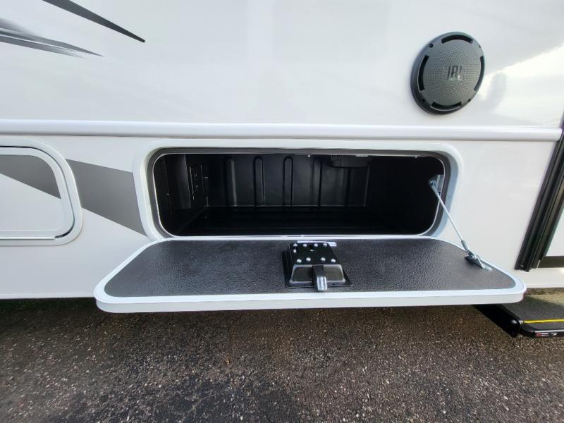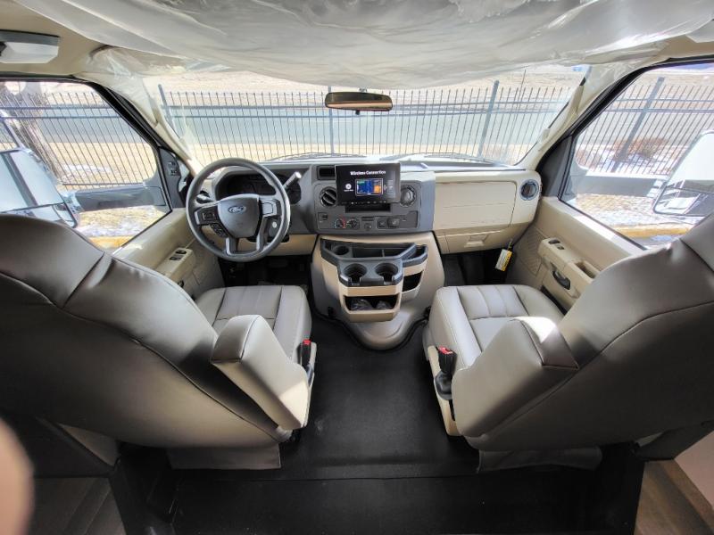 With any Greyhawk Class C gas motorhome by Jayco you will experience smooth sailing thanks to the JRIDE PLUS that comes with Koni shock absorbers, a computer-balanced driveshaft, Hellwig helper springs, and more. The Ford E-450 chassis with a 7.3L V8 325 HP engine will power your excursions, and you'll appreciate the added safety features for your peace of mind. Each model features a Sony infotainment center with Apple CarPlay and Android Auto, backup and side-view cameras, and a tire pressure monitor system the driver is sure to appreciate. Durable construction begins with Stronghold VBL roof, floor and sidewalls, bead-foam insulation, and a one-piece seamless fiberglass front cap. Head inside to find blackout night roller shades, LED-lit pressed countertops, an 84" interior ceiling height, and hardwood cabinet doors and drawers.