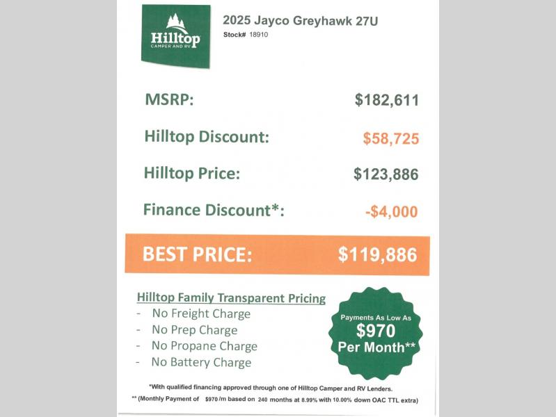 New 2025 Jayco Greyhawk 27U Motor Home Class C