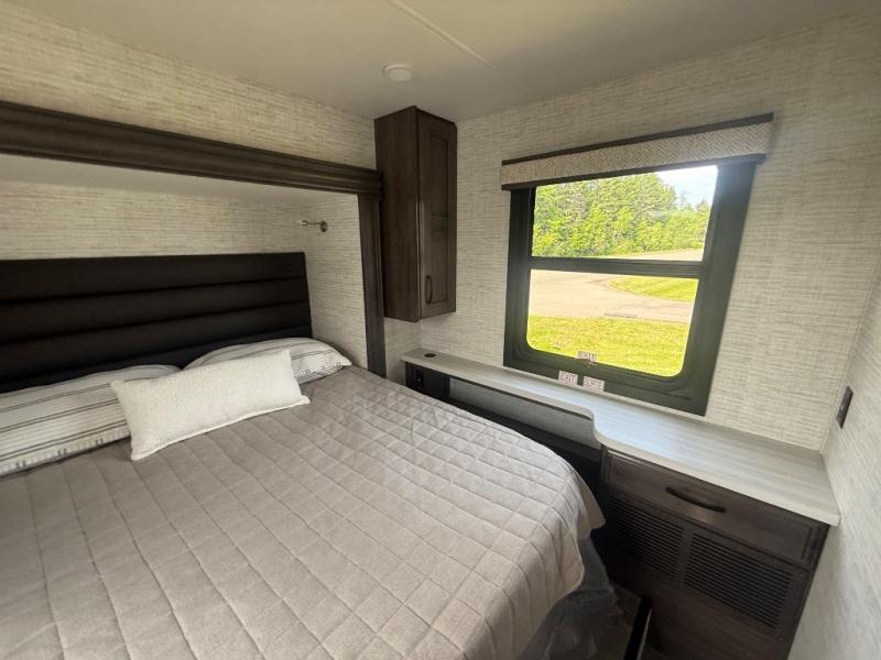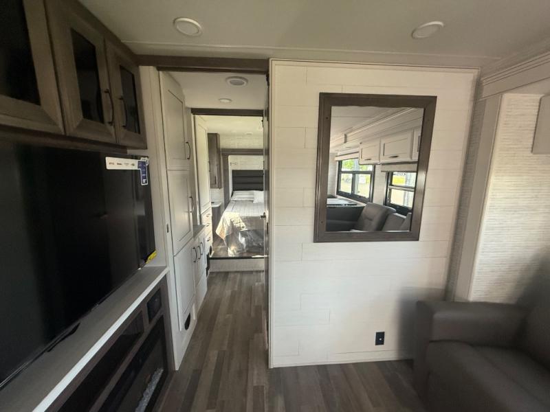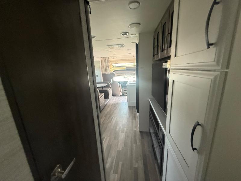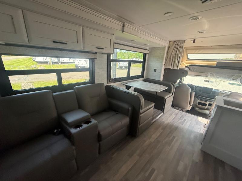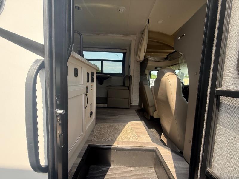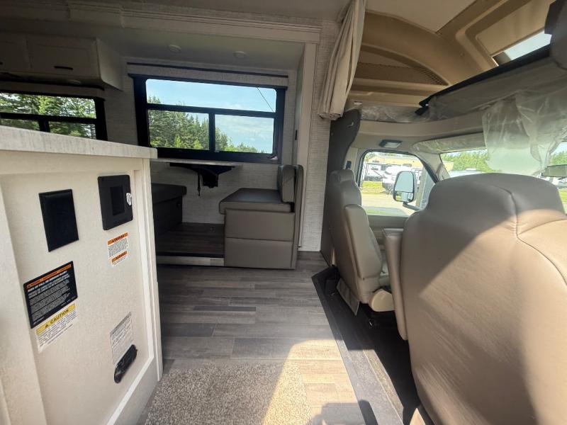With any Greyhawk Class C gas motorhome by Jayco you will experience smooth sailing thanks to the JRIDE PLUS that comes with Koni shock absorbers, a computer-balanced driveshaft, Hellwig helper springs, and more. The Ford E-450 chassis with a 7.3L V8 325 HP engine will power your excursions, and you'll appreciate the added safety features for your peace of mind. Each model features a Sony infotainment center with Apple CarPlay and Android Auto, backup and side-view cameras, and a tire pressure monitor system the driver is sure to appreciate. Durable construction begins with Stronghold VBL roof, floor and sidewalls, bead-foam insulation, and a one-piece seamless fiberglass front cap. Head inside to find blackout night roller shades, LED-lit pressed countertops, an 84" interior ceiling height, and hardwood cabinet doors and drawers.
