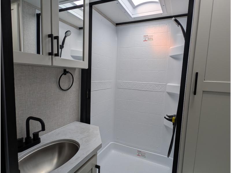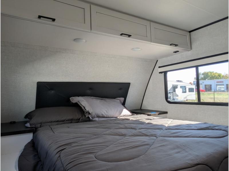 With any Jay Feather travel trailer by Jayco, you will enjoy lightweight towing, convenient exterior amenities, and at-home comforts inside! The Overlander 1 Solar Package included within the Jay Sport Package comes with a 200W solar panel and a 30-amp digital controller so you can enjoy some off-grid camping. There is also a modern graphics package with a dual-colored sidewall, LCI Solid Step fold-down aluminum tread steps on the main entry door, and Climate Shield 0 -100° F tested weather insulation package that will allow you to camp in all sorts of climates. The Customer Value Package will make time outdoors easier than ever with a power tongue jack and a Rock Solid stabilizer system, plus American-made nitro-filled Goodyear tires with self-adjusting electric brakes. More exterior features include a Keyed-Alike locking system, marine grade exterior speakers, a Magnum Truss roof system, and the list goes on! And we haven't even touched on the interior comforts, like the residential style seamless countertops and vinyl flooring throughout, decorative backsplash, handcrafted hardwood door/drawer fronts, and multiple USB charging ports to keep you going!
