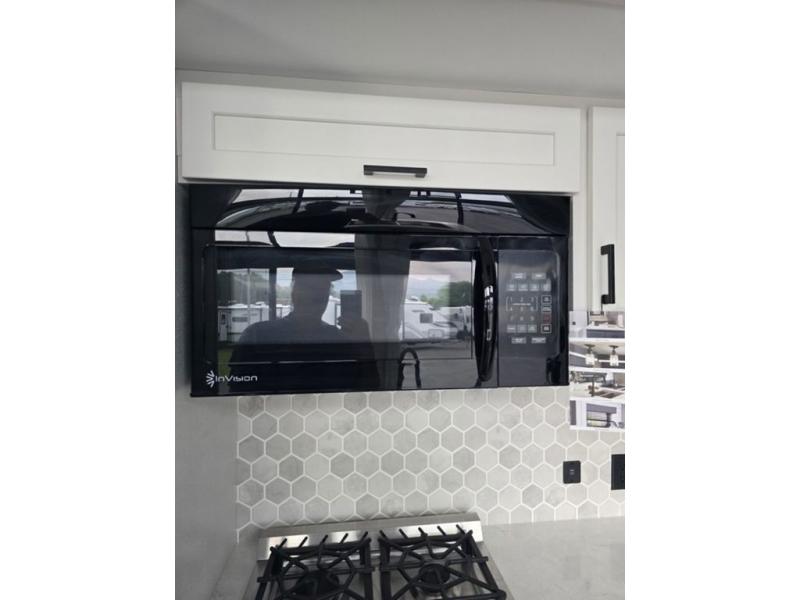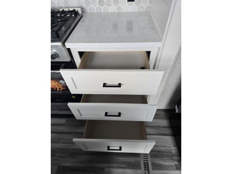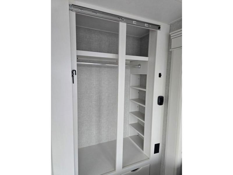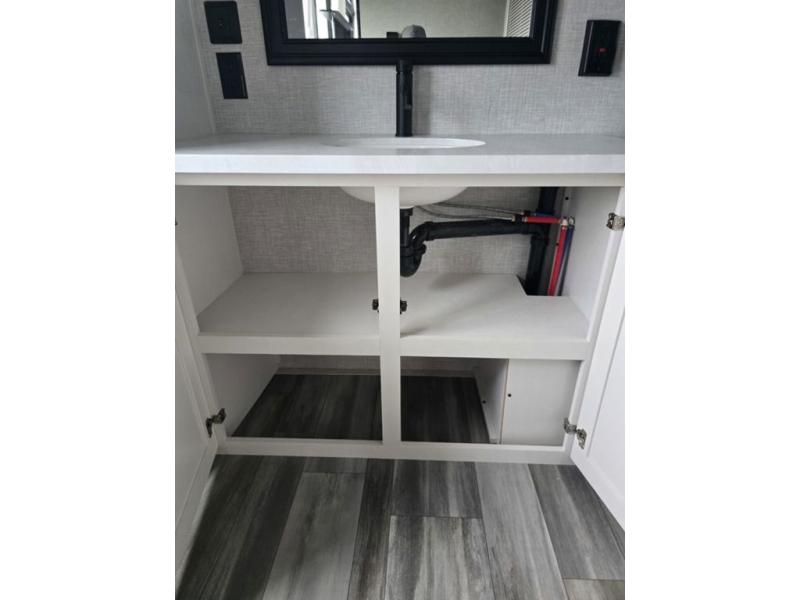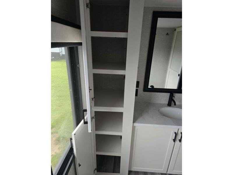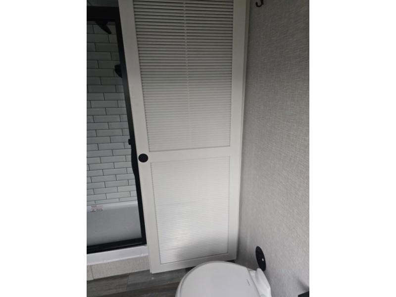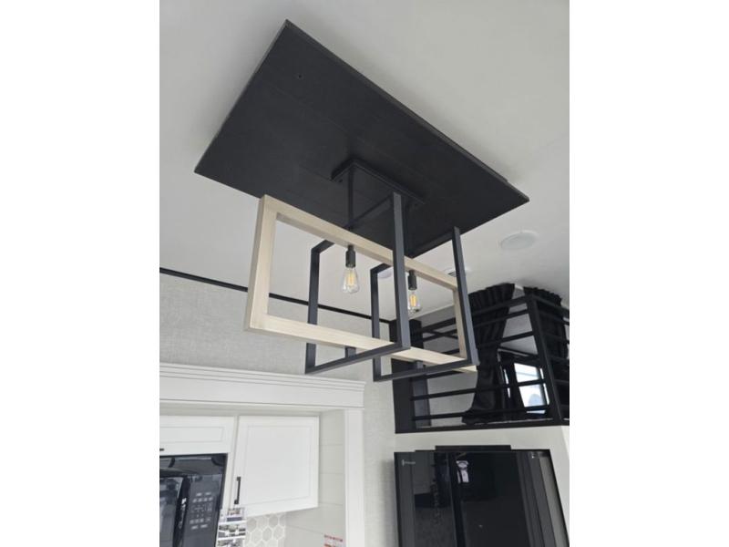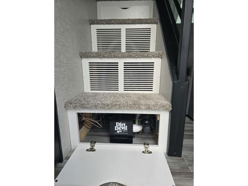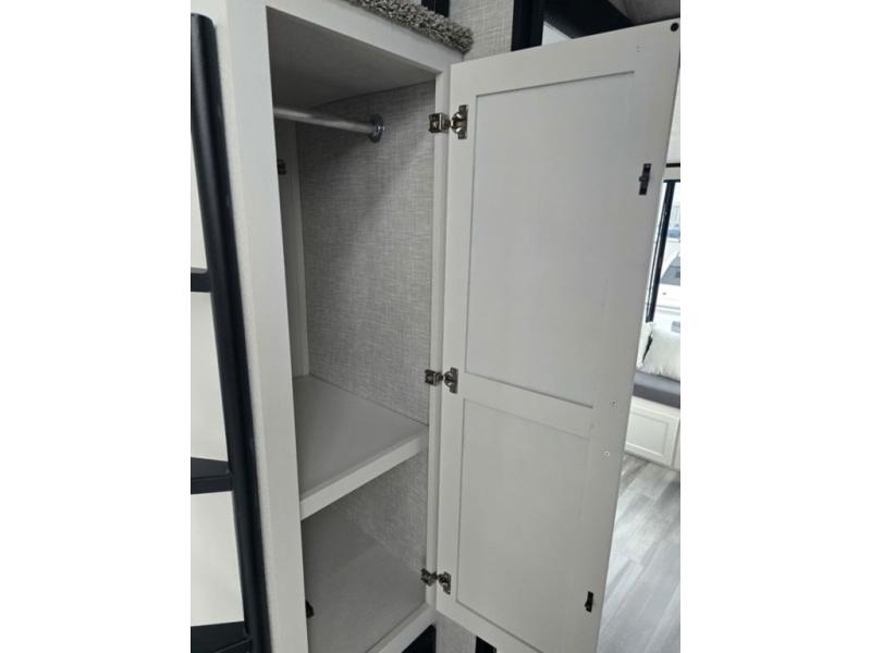 Travel in comfort with your family. You will love having your own bedroom up front with a queen bed, a bench with storage below, plus a dresser and over head cabinet for your things. This unit comes with more space for everyone to sleep for instance the loft area, which has multiple bunk mats where three people can easily fit, or the sectional sofa with hide-a-bed situated in the living room, ideal for two. Also in the living area, you will be able to enjoy the entertainment center, plus, a ceiling fan will keep the air moving while the chef cooks delicious meals in the morning, and you all can dine at the kitchen island which includes bar stools. The Kitchen is also fitted with a residential fridge, microwave, four cooktop burner, sink and pantry perfect to cook with luxury and comfort. Finally, take a bath in the full rear bathroom.